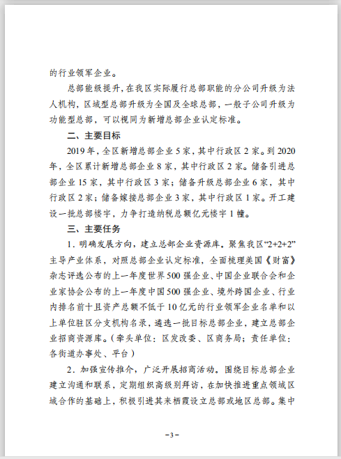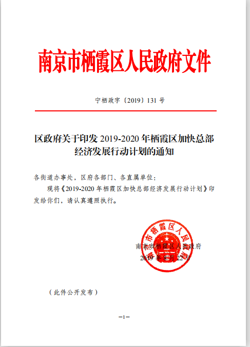 區政府關于印發2019-2020年棲霞區加快總部經濟發展行動計劃的通知