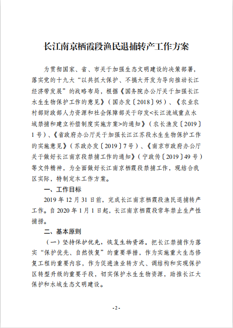 區(qū)政府辦公室關(guān)于印發(fā)長(zhǎng)江南京棲霞段漁民退捕轉(zhuǎn)產(chǎn)工作方案的通知