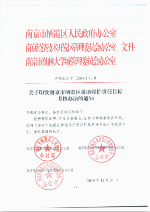 關于印發南京市棲霞區耕地保護責任目標考核辦法的通知