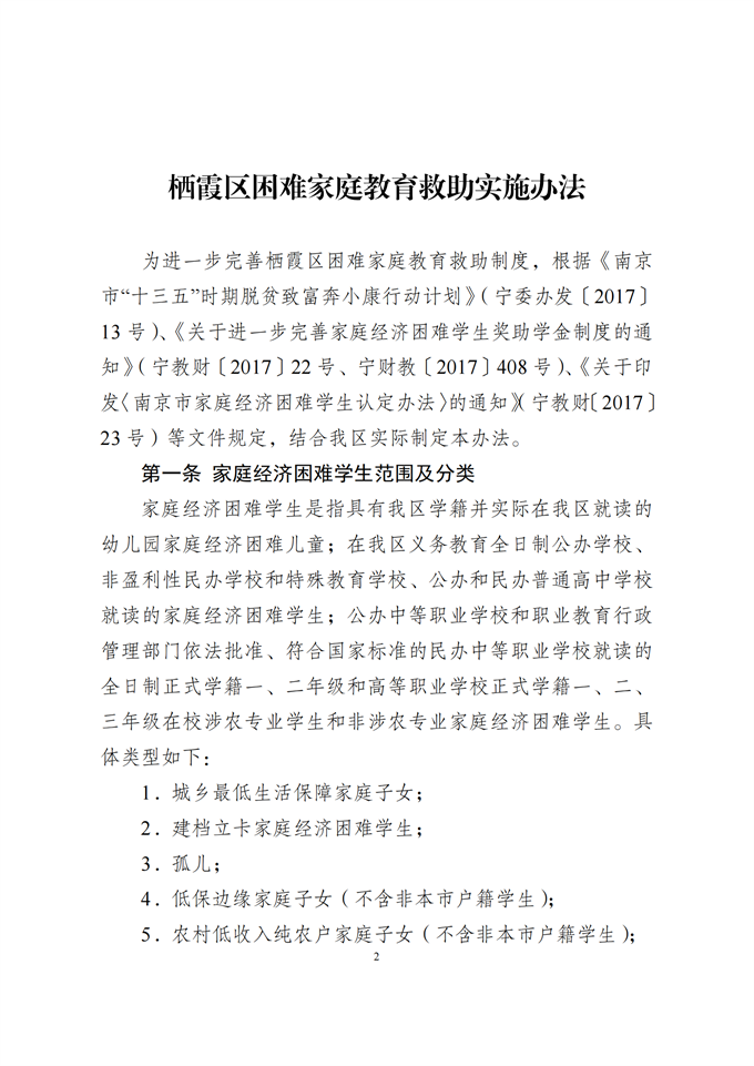 區(qū)政府關(guān)于印發(fā)《棲霞區(qū)困難家庭教育救助實(shí)施辦法》的通知