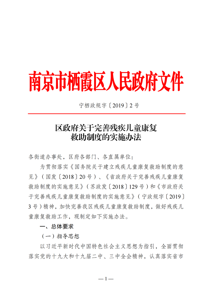 寧棲政規字〔2019〕2號 區政府關于完善殘疾兒童康復救助制度的實施辦法.pdf