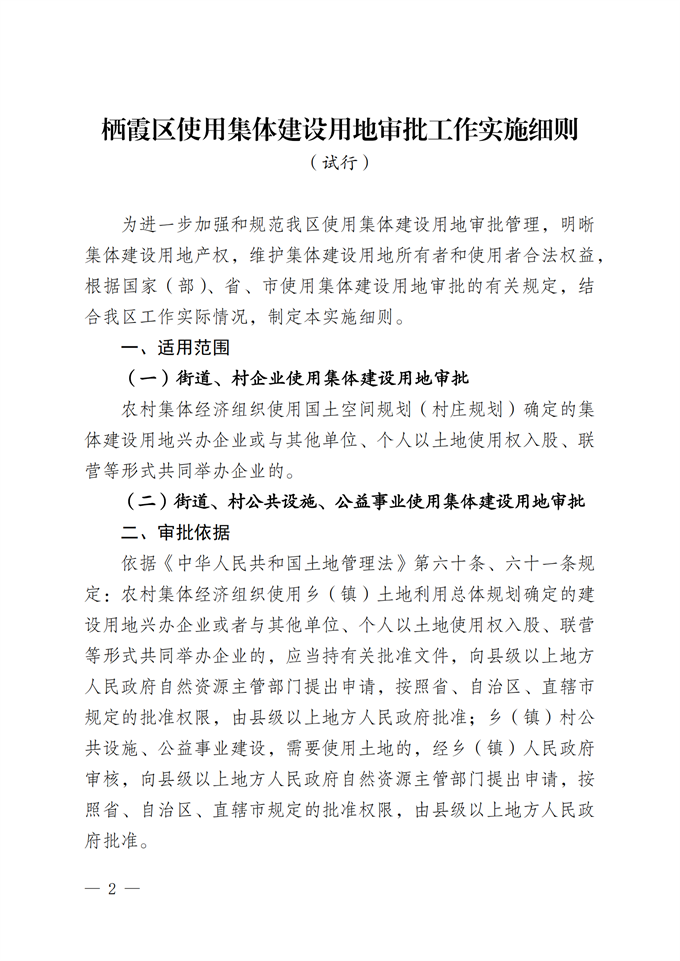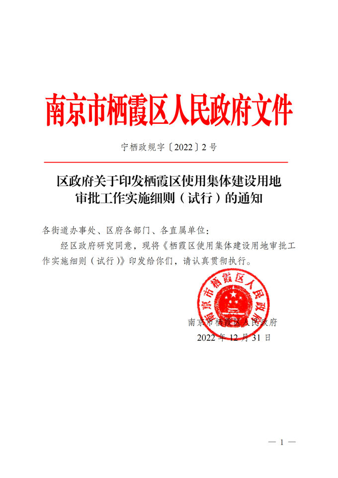 區(qū)政府關(guān)于印發(fā)棲霞區(qū)使用集體建設(shè)用地審批工作實(shí)施細(xì)則(試行)的通知