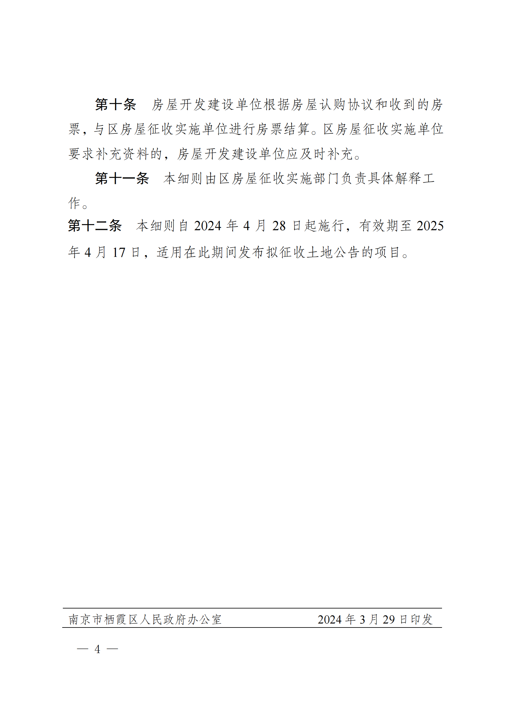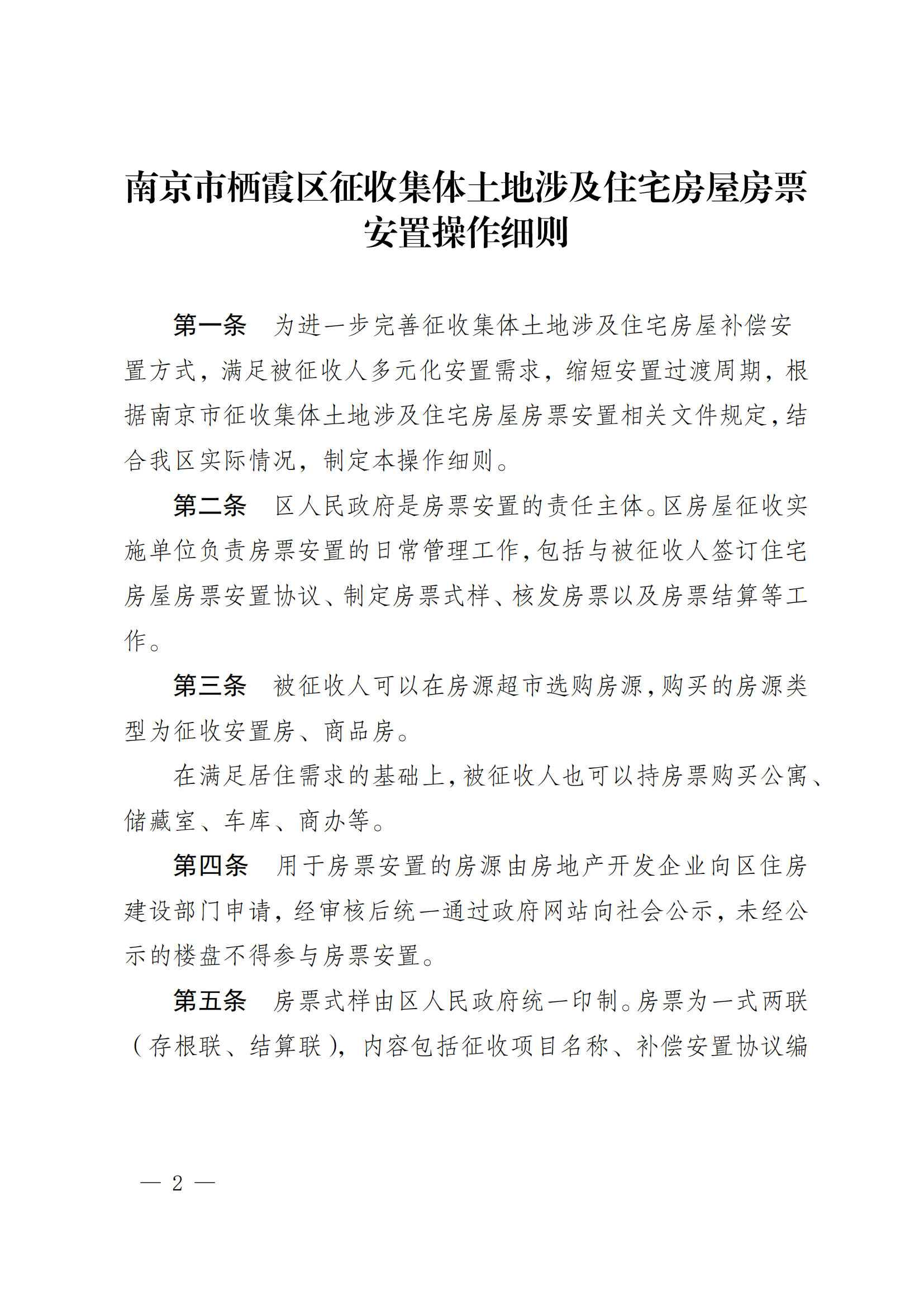 寧棲政規(guī)字〔2024〕2號 關于印發(fā)南京市棲霞區(qū)征收集體土地涉及住宅房屋房票安置操作細則的通知