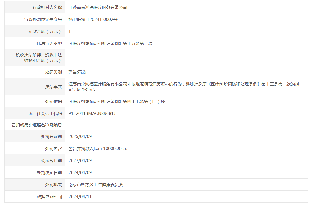 信息名稱:    醫療機構不良執業行為公示(棲衛醫罰〔2024〕0002號)