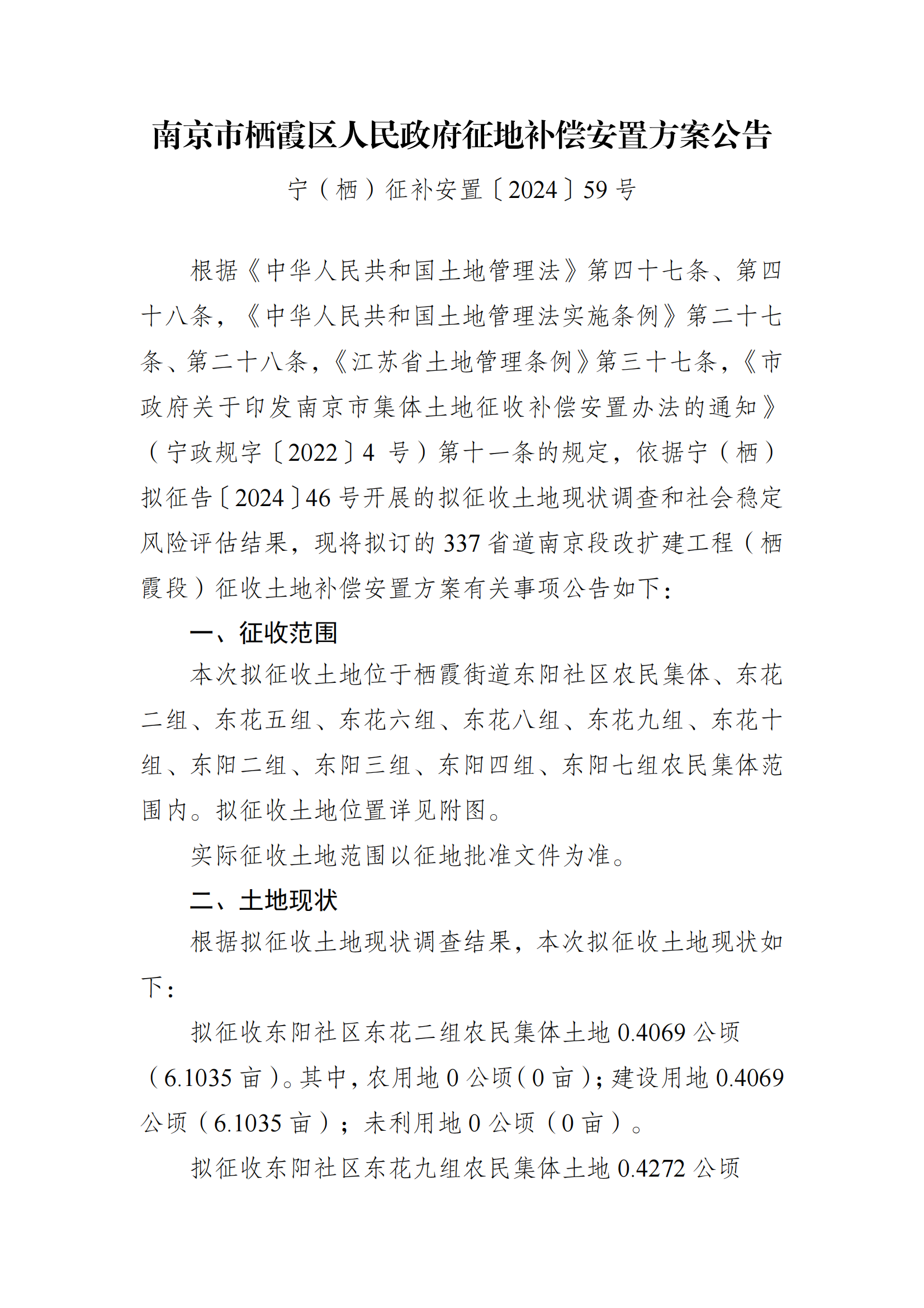 信息名稱:    寧(棲)征補安置〔2024〕59號-337省道南京段改擴建工程(棲霞段)