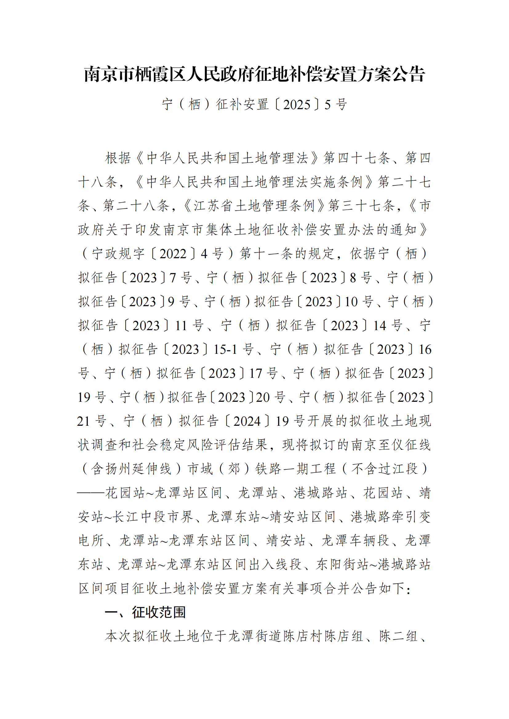 信息名稱:    寧(棲)征補安置〔2025〕5號-寧揚城際二公告-龍潭街道
