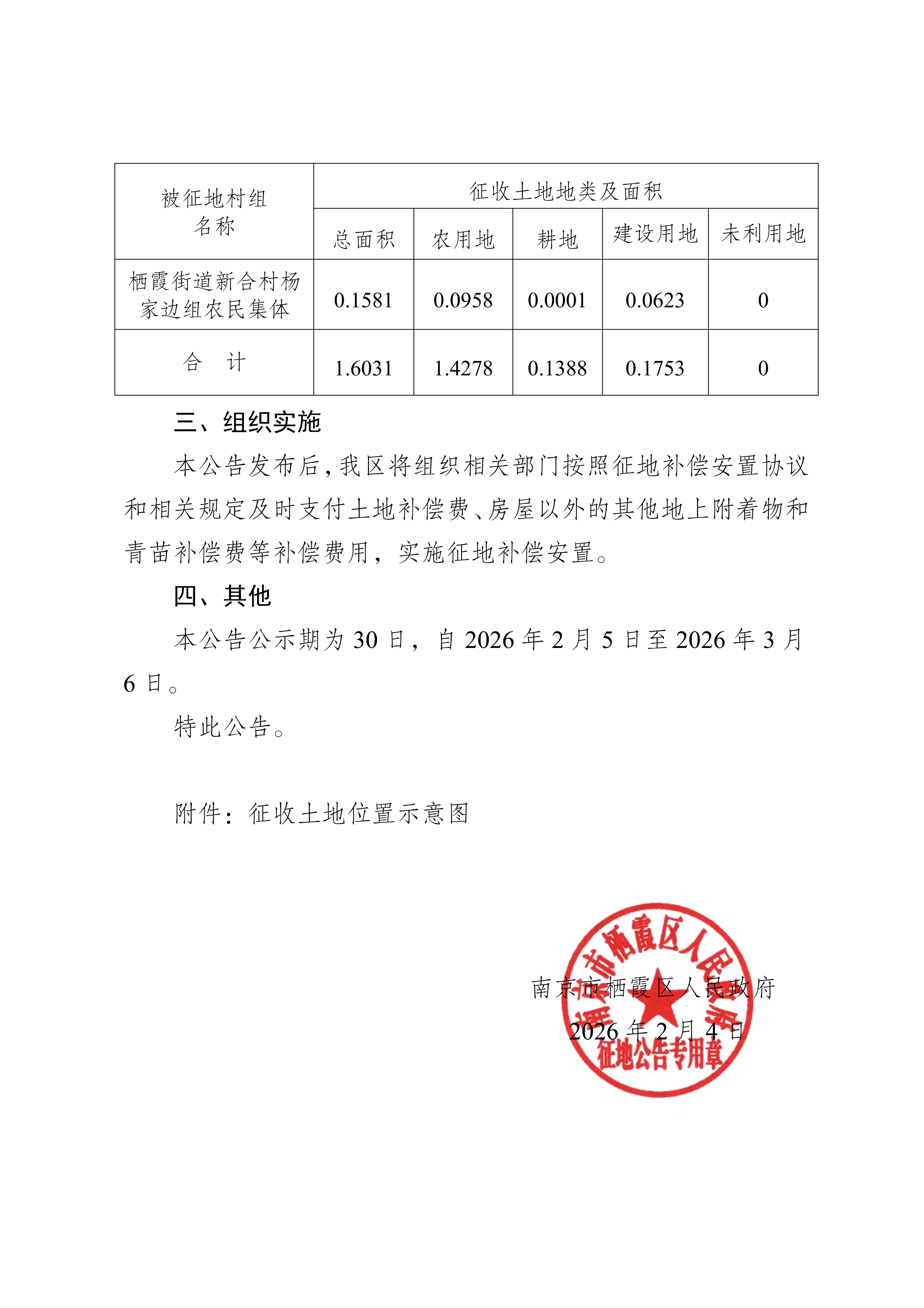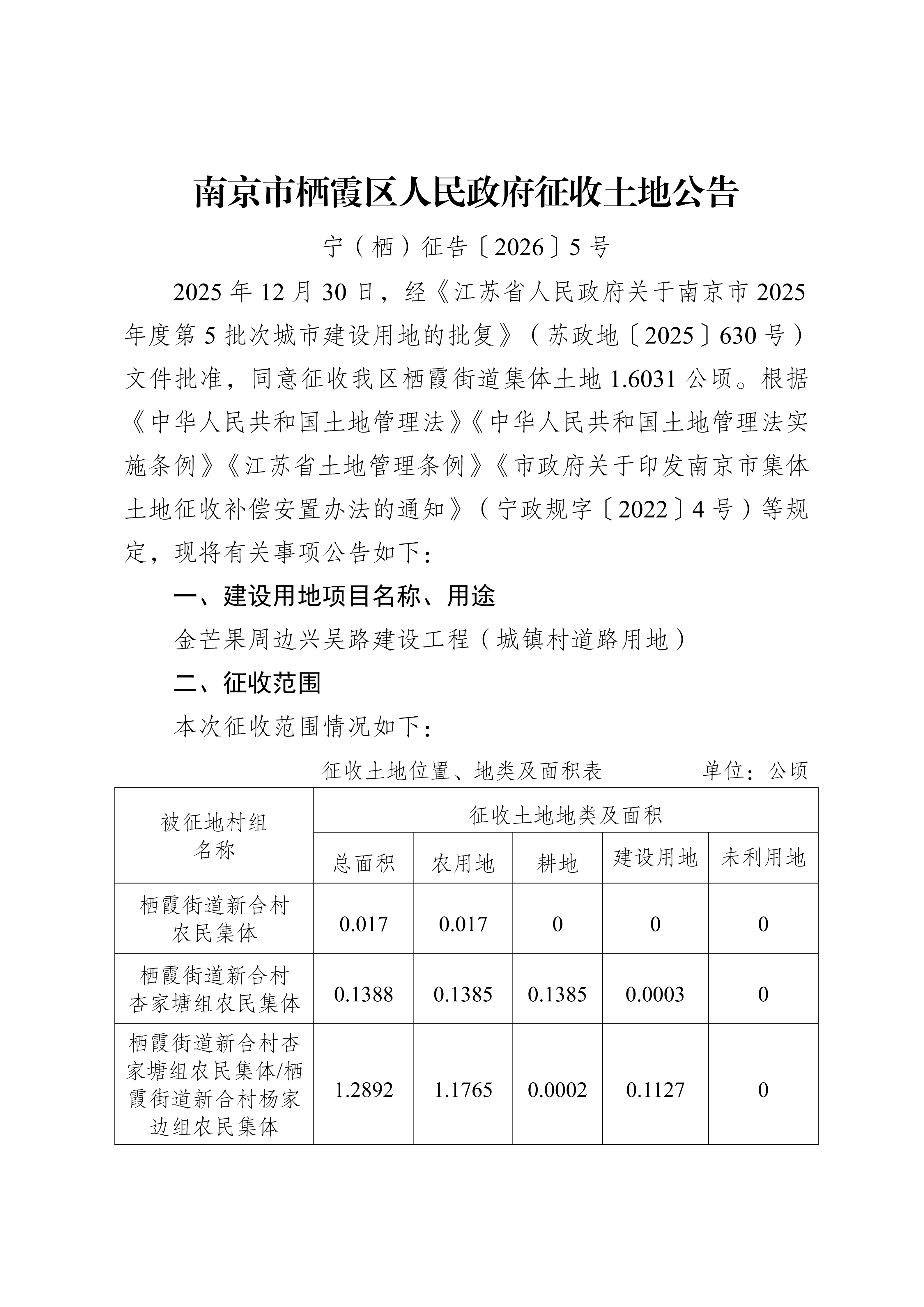 信息名稱:    征收土地公告-寧(棲)征告〔2026〕5號-金芒果周邊興吳路建設(shè)工程