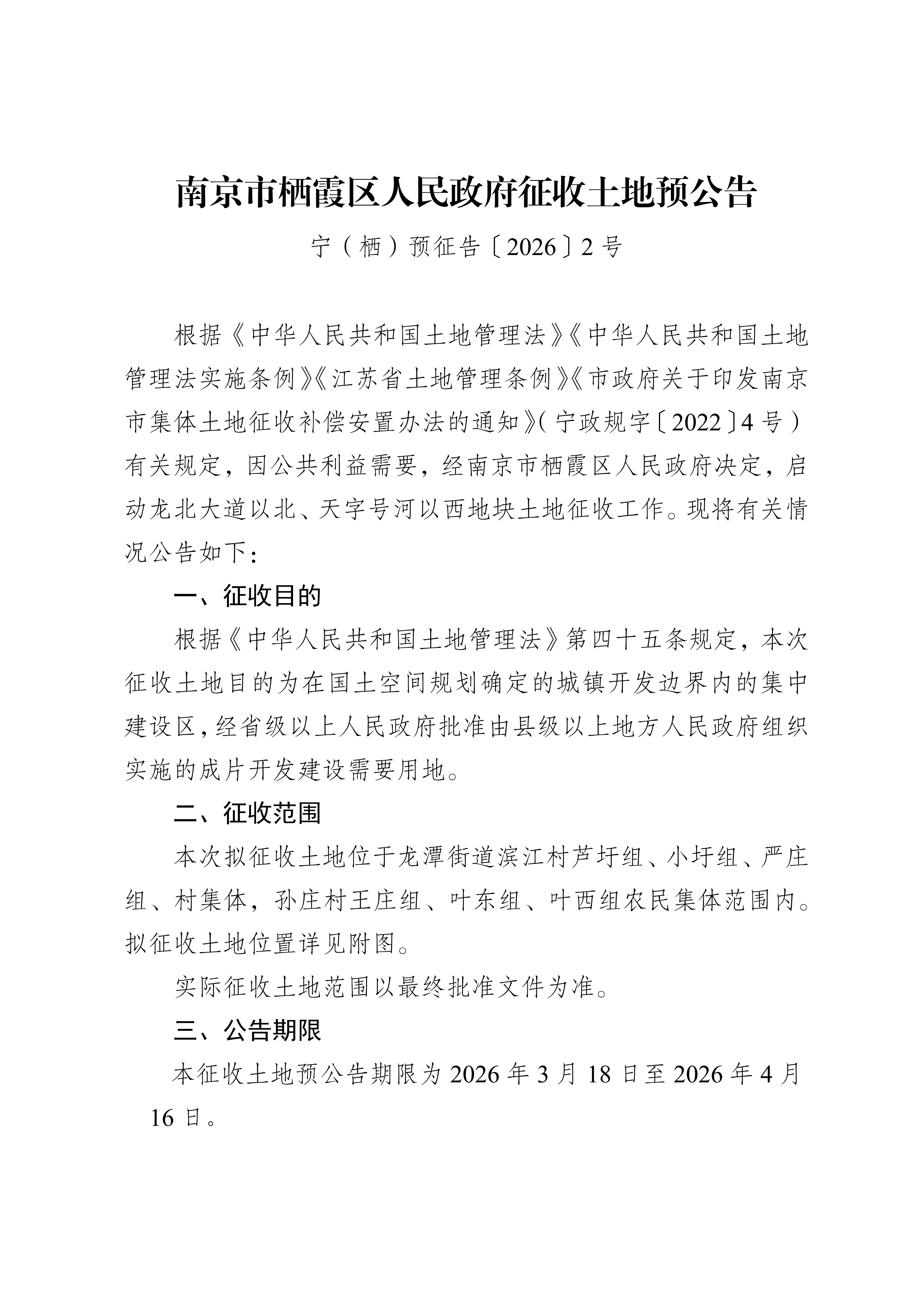 寧(棲)預征告〔2026〕2號-龍北大道以北、天字號河以西地塊