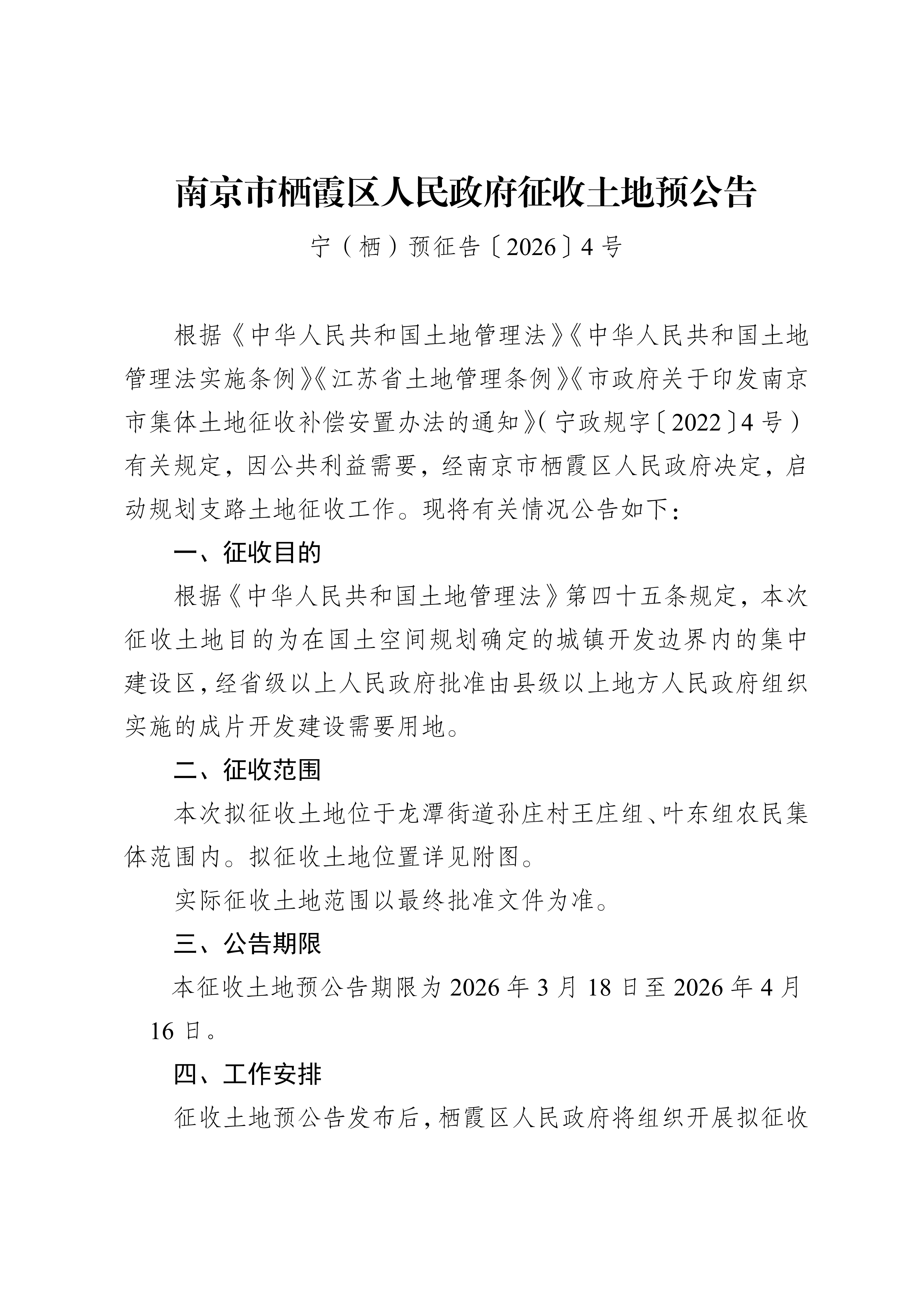 信息名稱:    寧(棲)預征告〔2026〕4號-規劃支路
