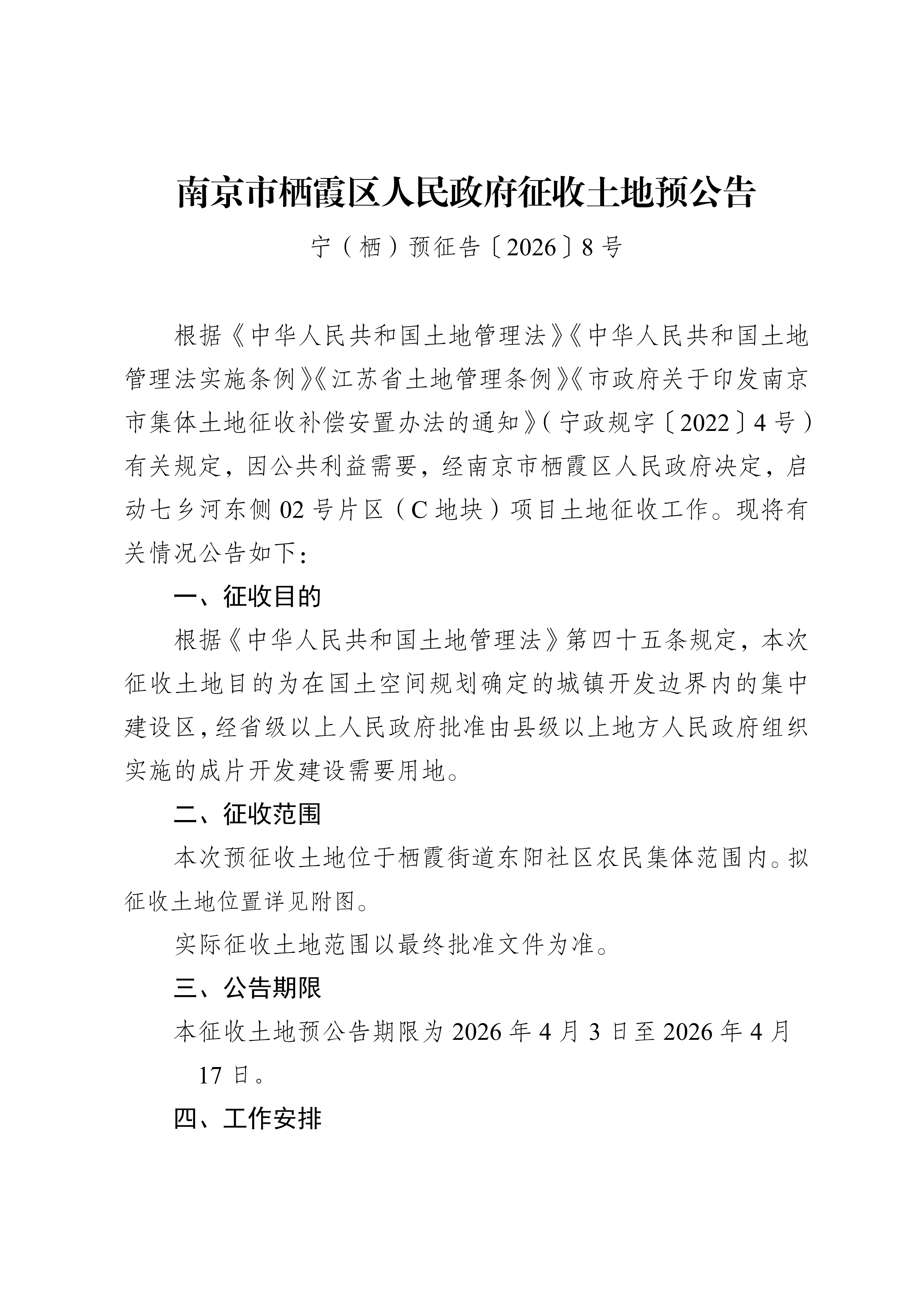 信息名稱:    寧(棲)預征告〔2026〕8號-七鄉河東側02號片區(C地塊)