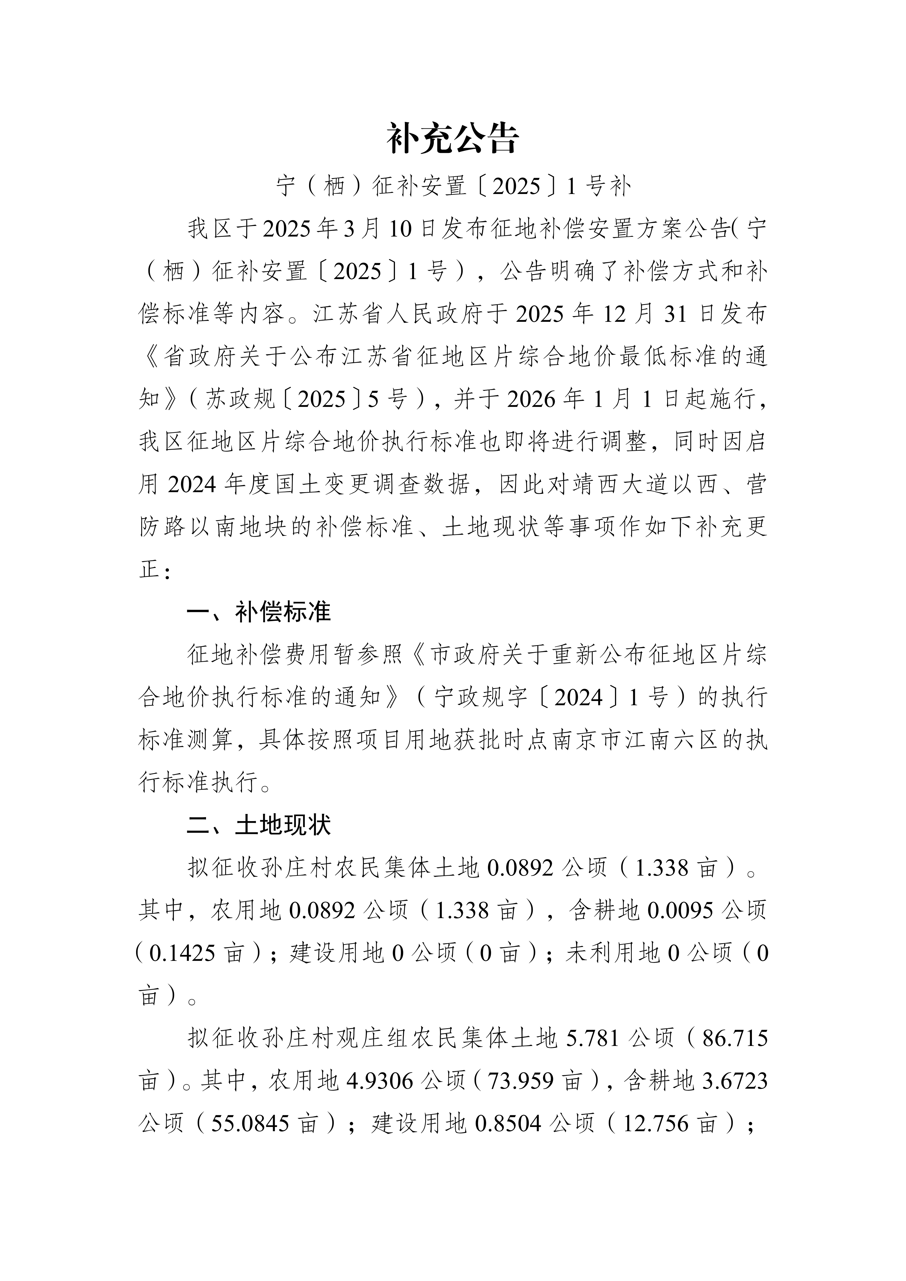 組配分類:    征收補償 體裁分類:    公告