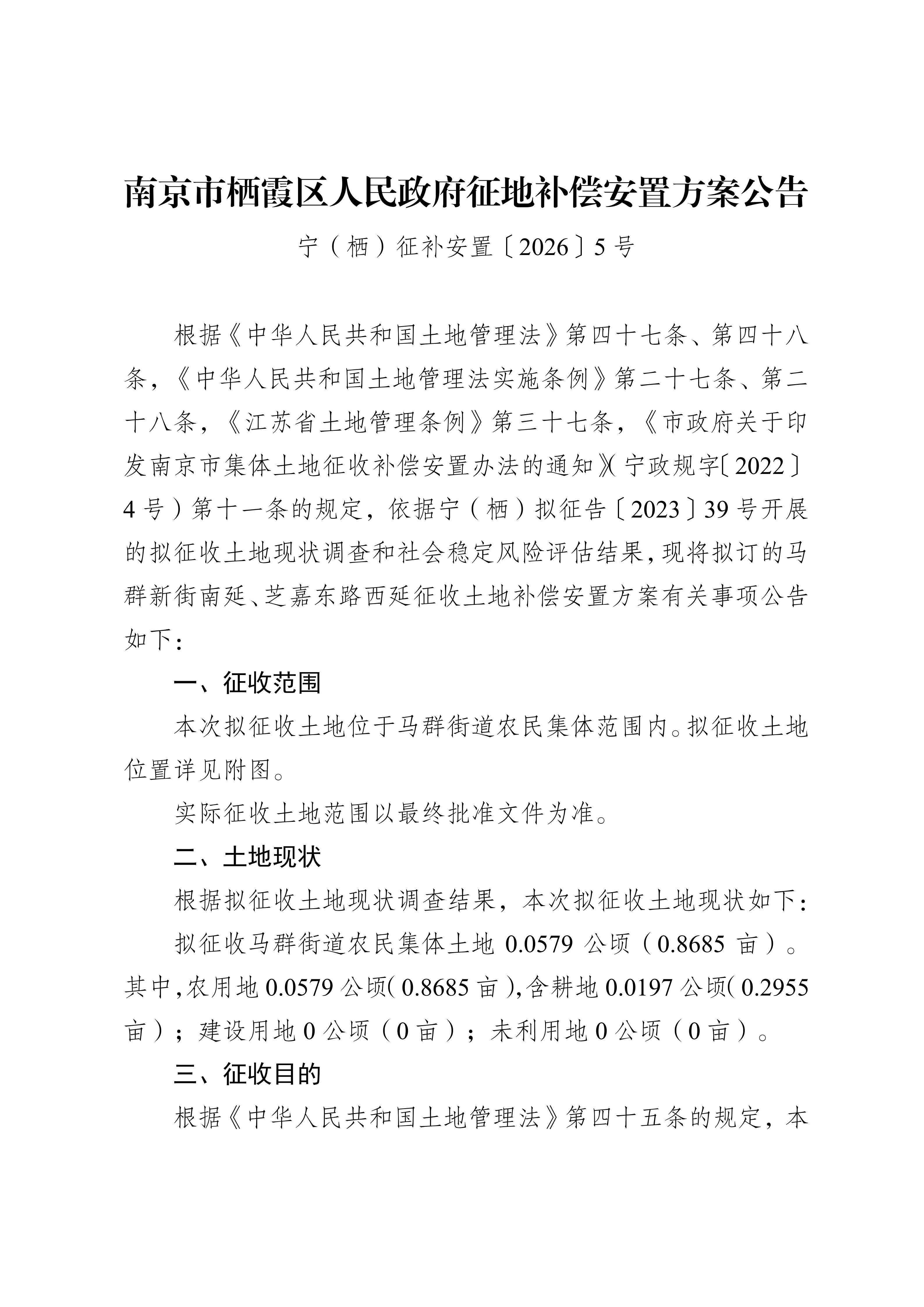 寧(棲)征補(bǔ)安置〔2026〕5號(hào)-13202300175-馬群新街南延、芝嘉東路西延