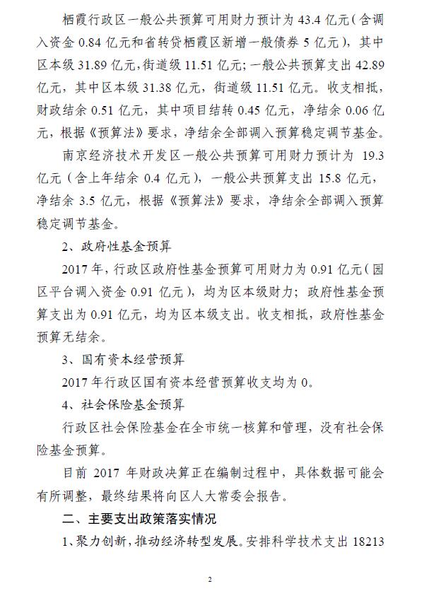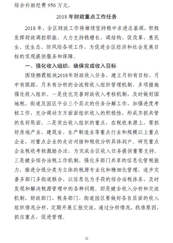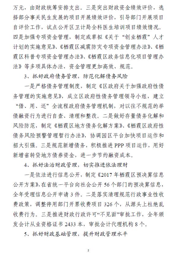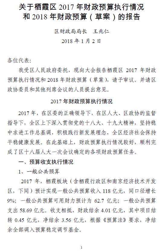 關于棲霞區2017年財政預算執行情況和2018年財政預算(草案)的報告