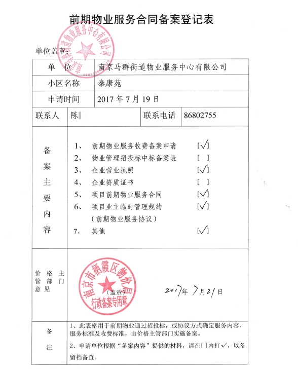 泰康苑小區(qū)前期物業(yè)服務(wù)合同備案