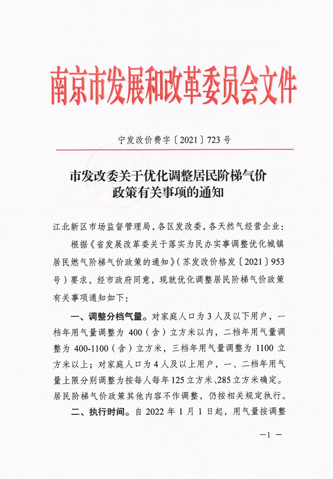 市發改委關于優化調整居民階梯氣價政策有關事項的通知