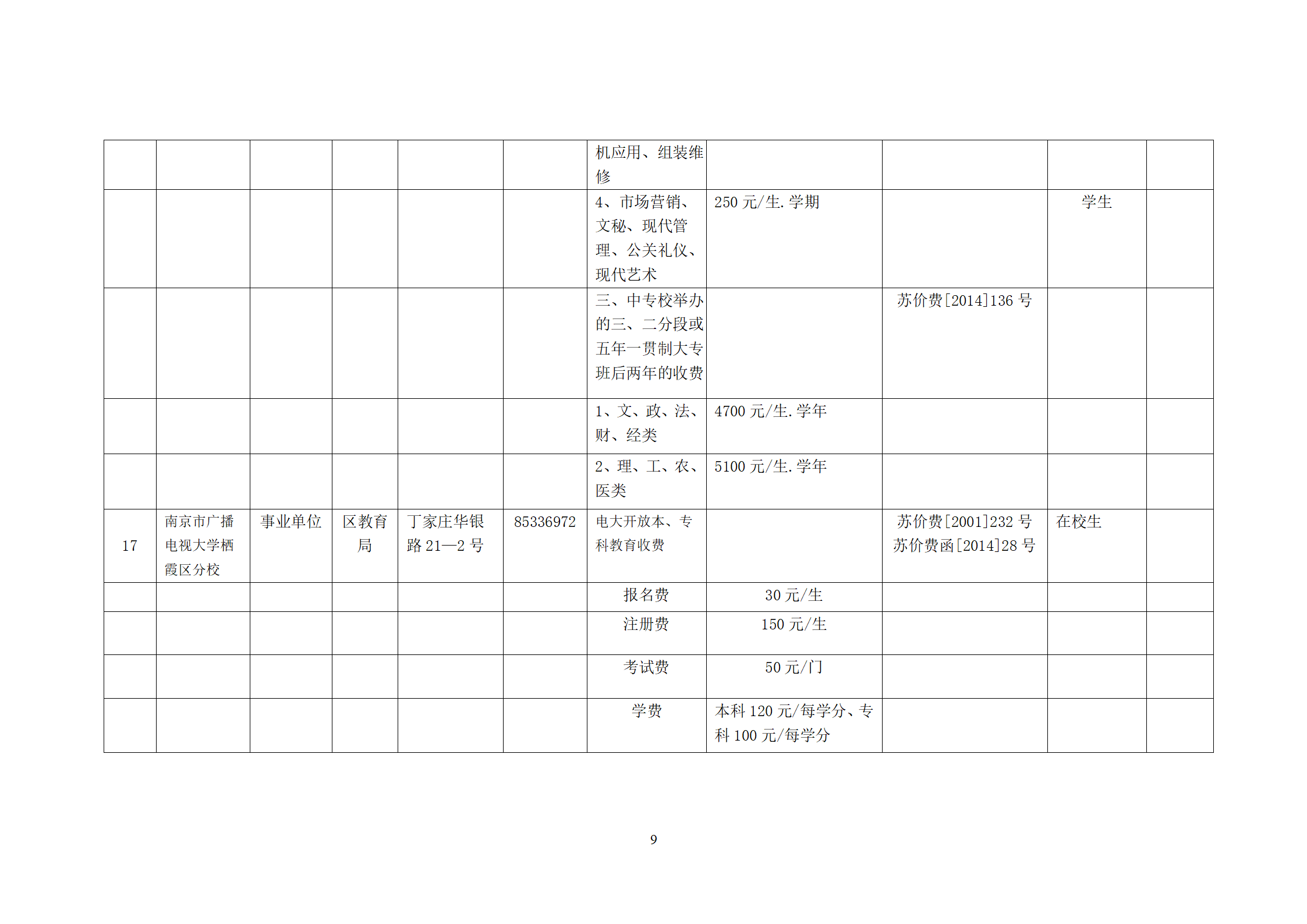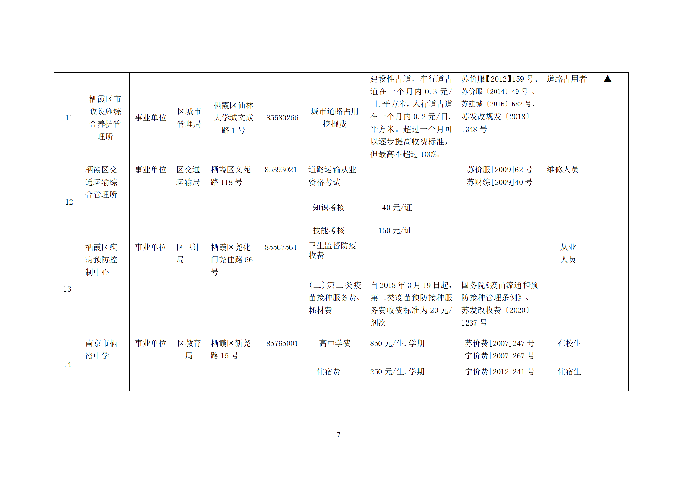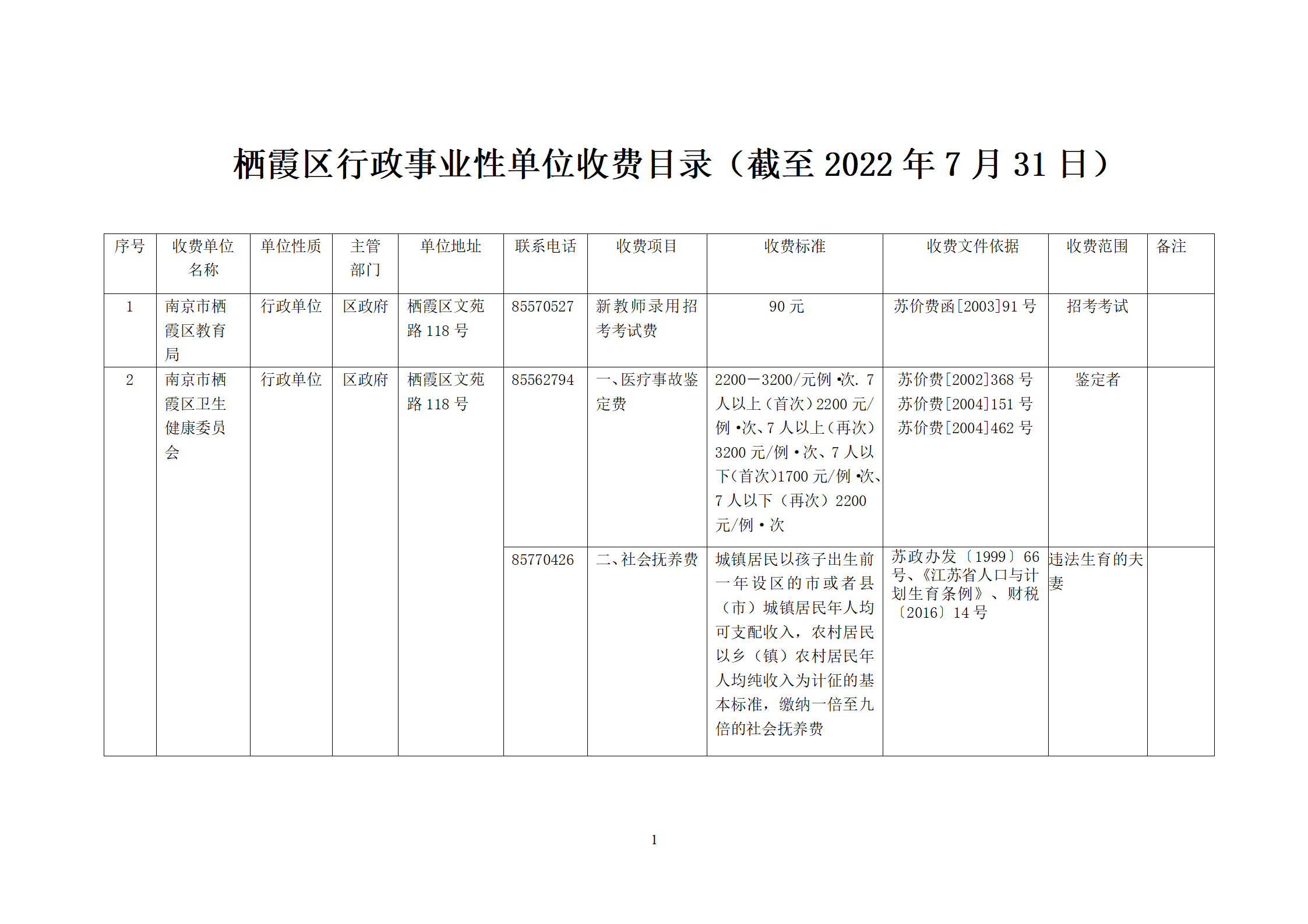 信息名稱:    棲霞區行政事業性單位收費目錄(截至2022年7月31日)