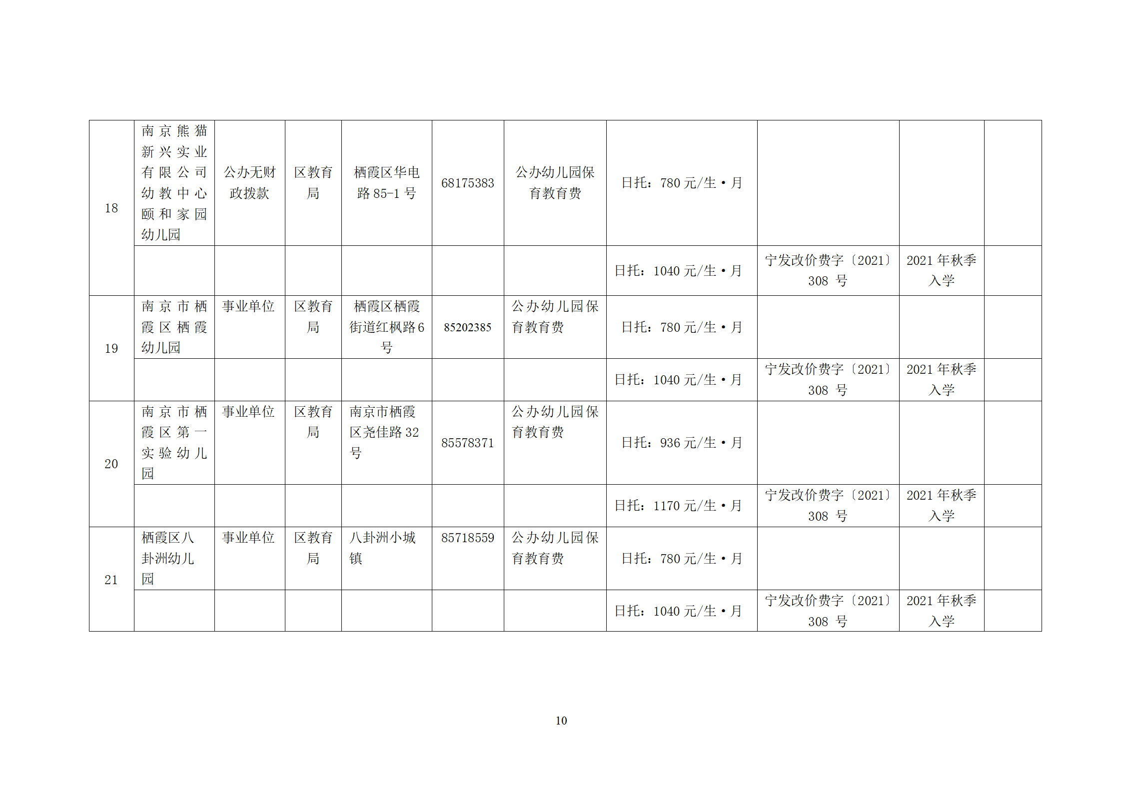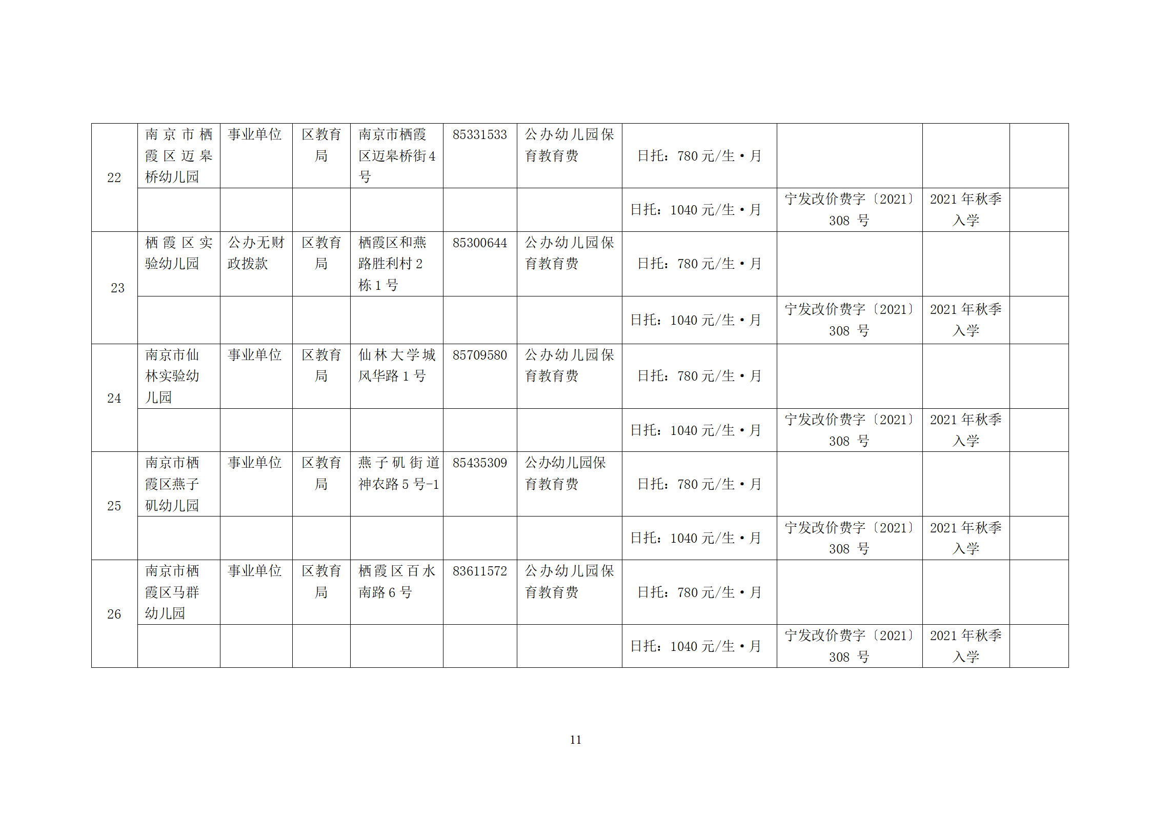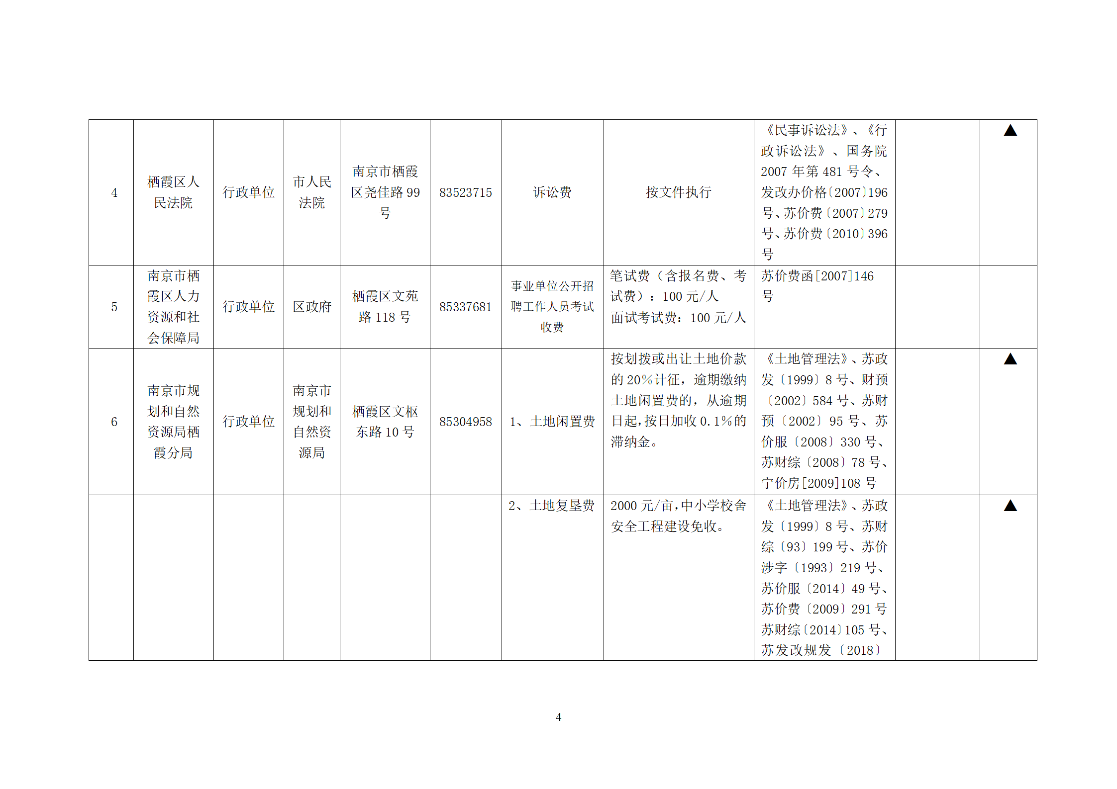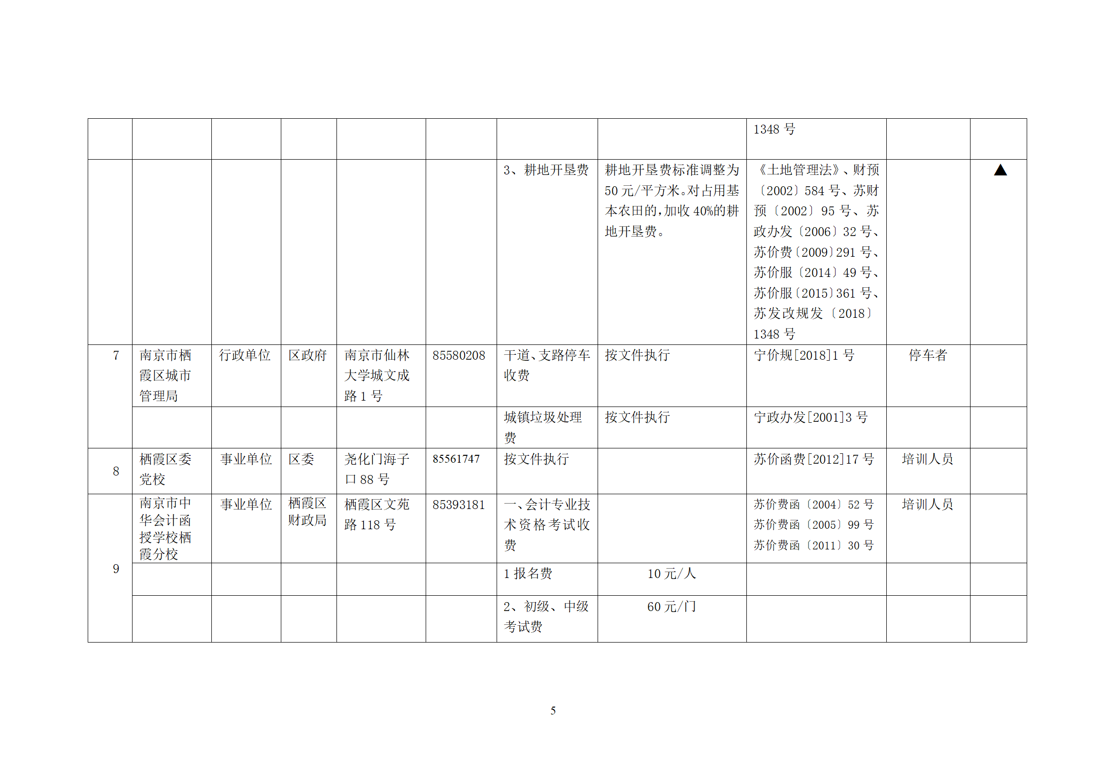 棲霞區行政事業性單位收費目錄(截至2022年7月31日)