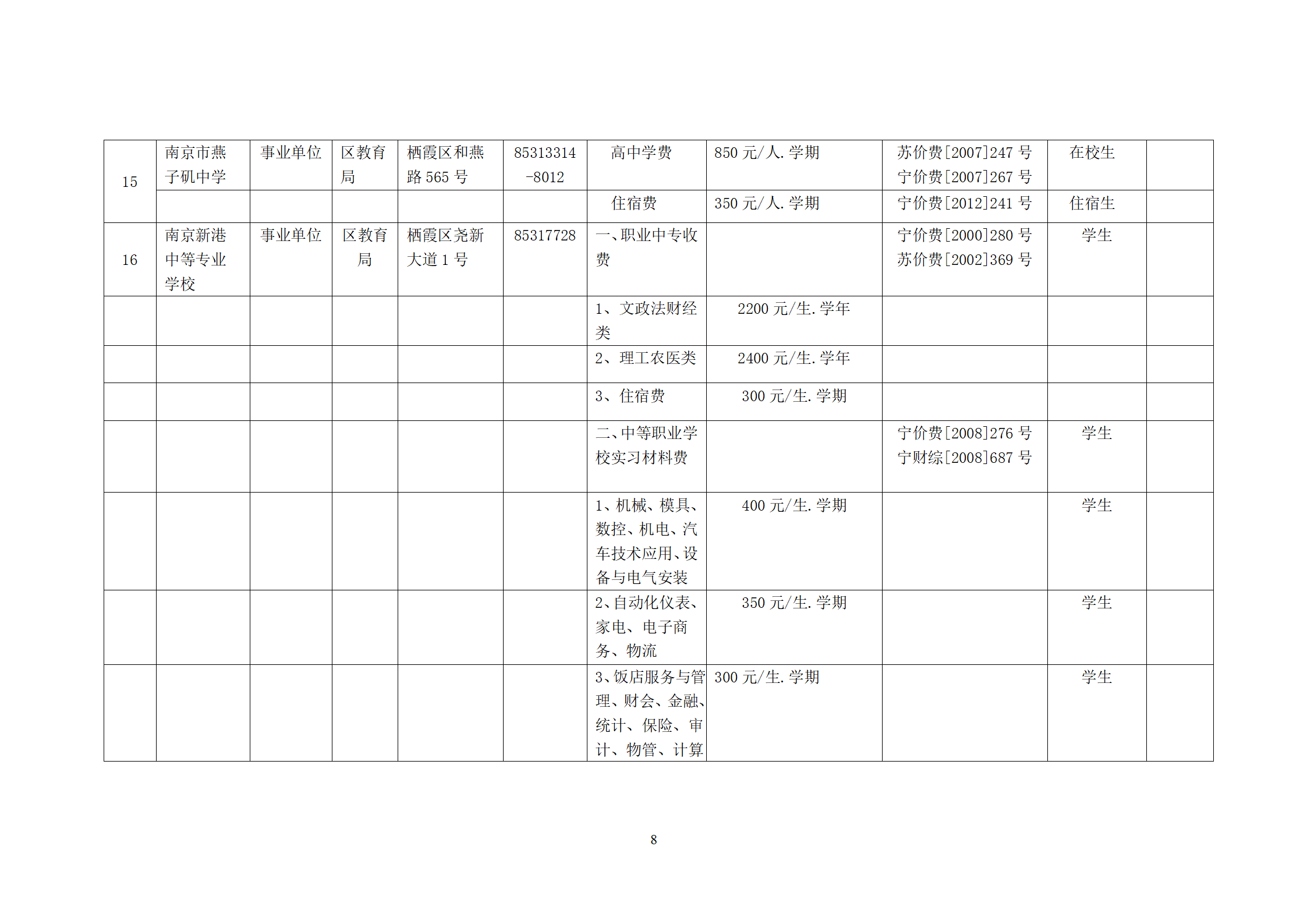棲霞區行政事業單位收費目錄2022.7.31(公示).doc