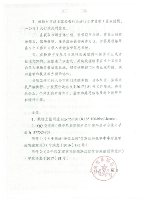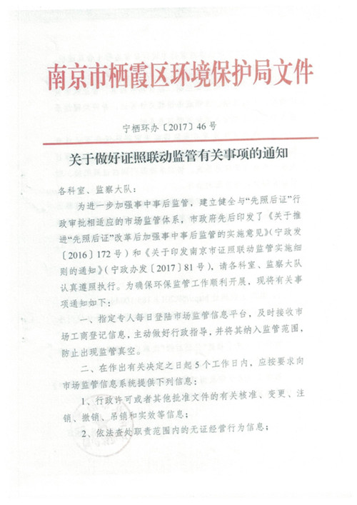 文  號:    寧棲環辦〔2017〕46號 關 鍵 詞:    證照聯動