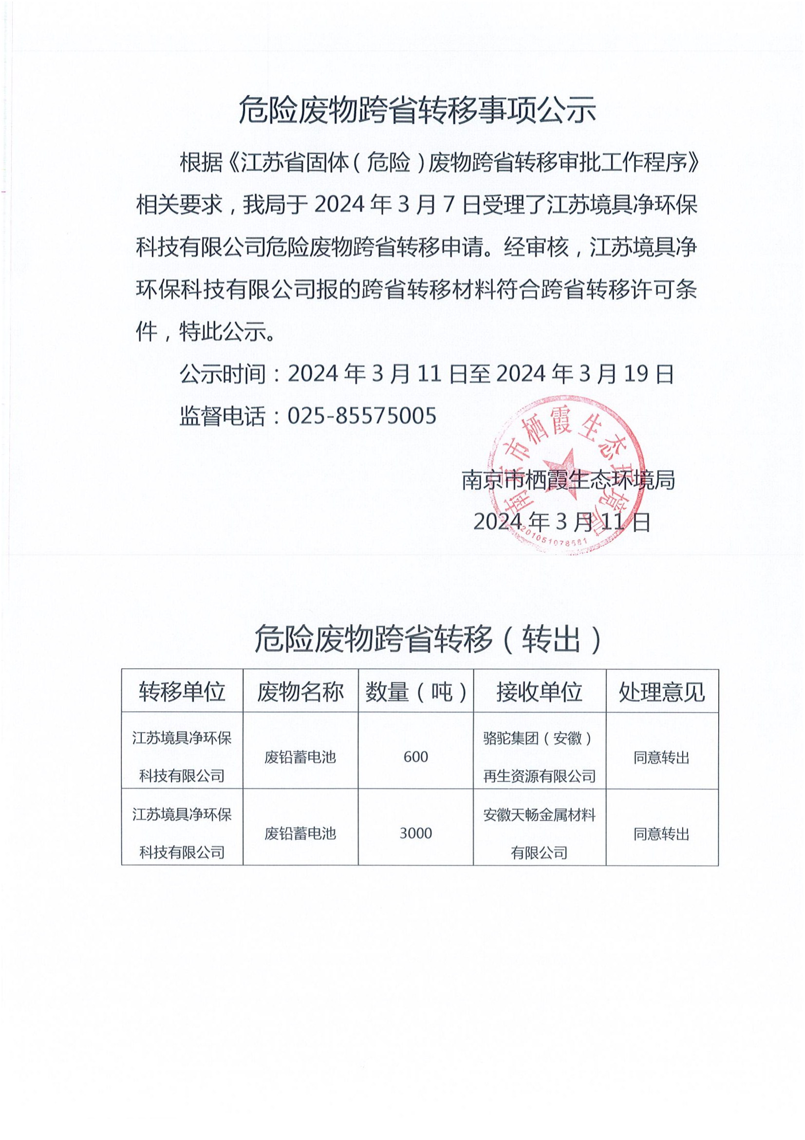危險(xiǎn)廢物跨省轉(zhuǎn)移事項(xiàng)公示