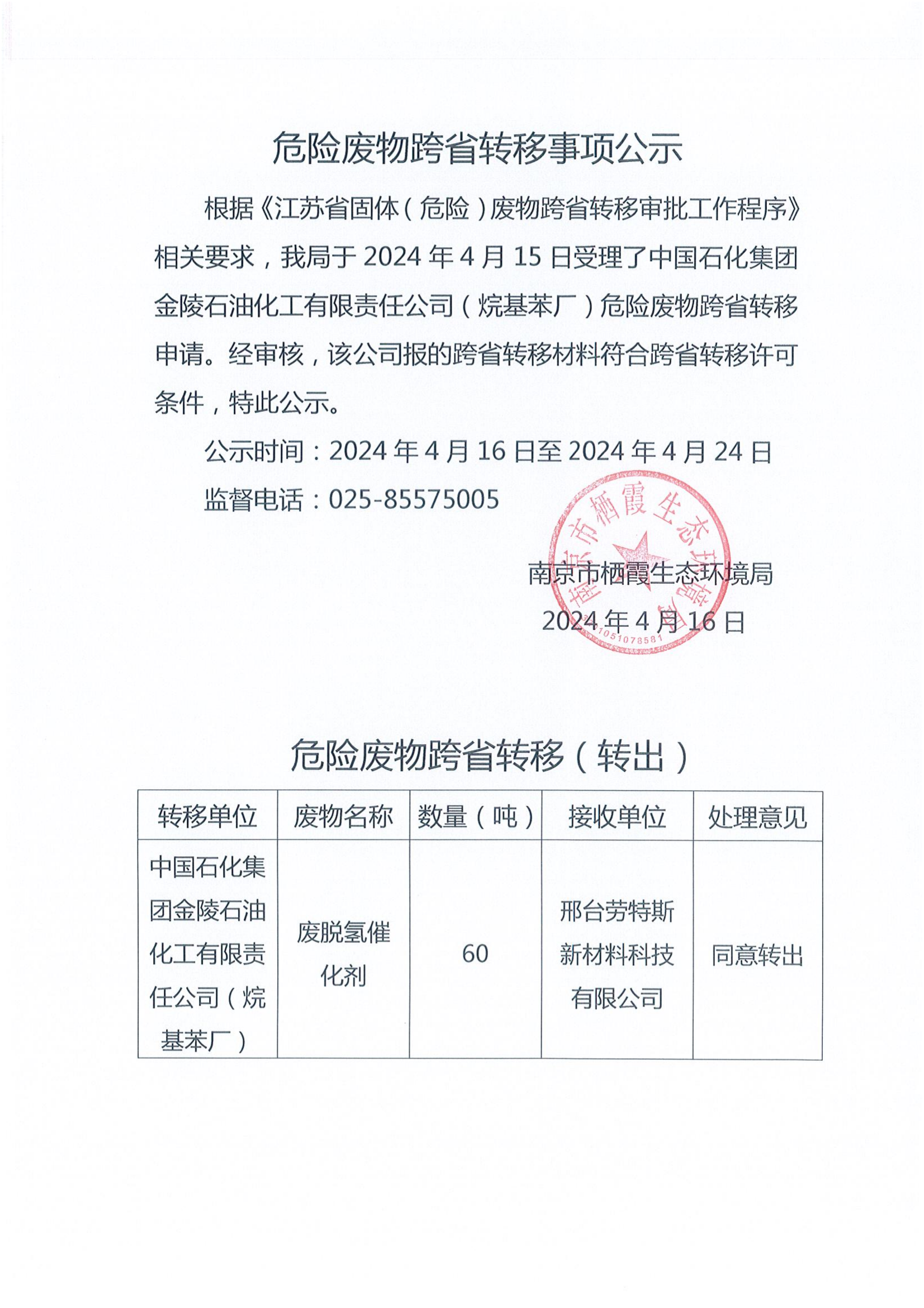 危險(xiǎn)廢物跨省轉(zhuǎn)移事項(xiàng)公示