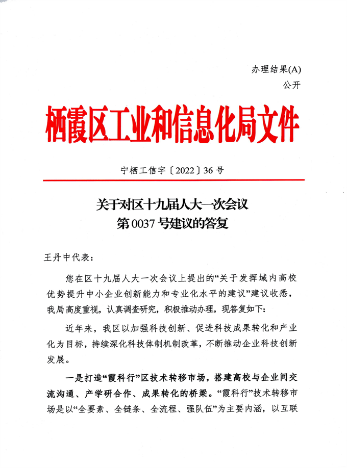 關(guān)于對(duì)區(qū)十九屆人大一次會(huì)議第0037號(hào)建議的答復(fù)
