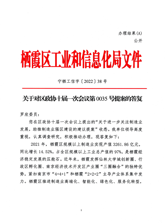 信息名稱:    關于對區政協十屆一次會議第0035號提案的答復
