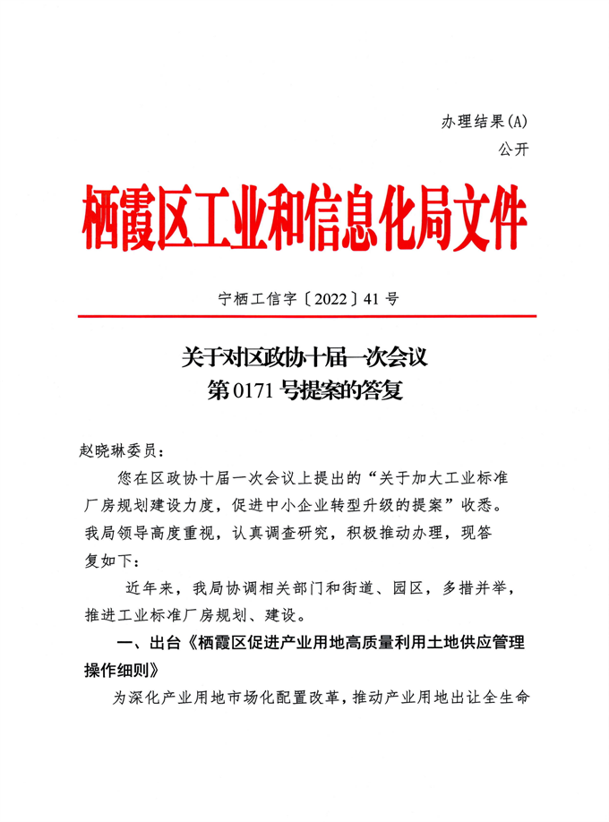 信息名稱:    關于對區政協十屆一次會議第0171號提案的答復