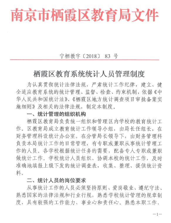 信息名稱:    棲霞區教育系統統計人員管理制度