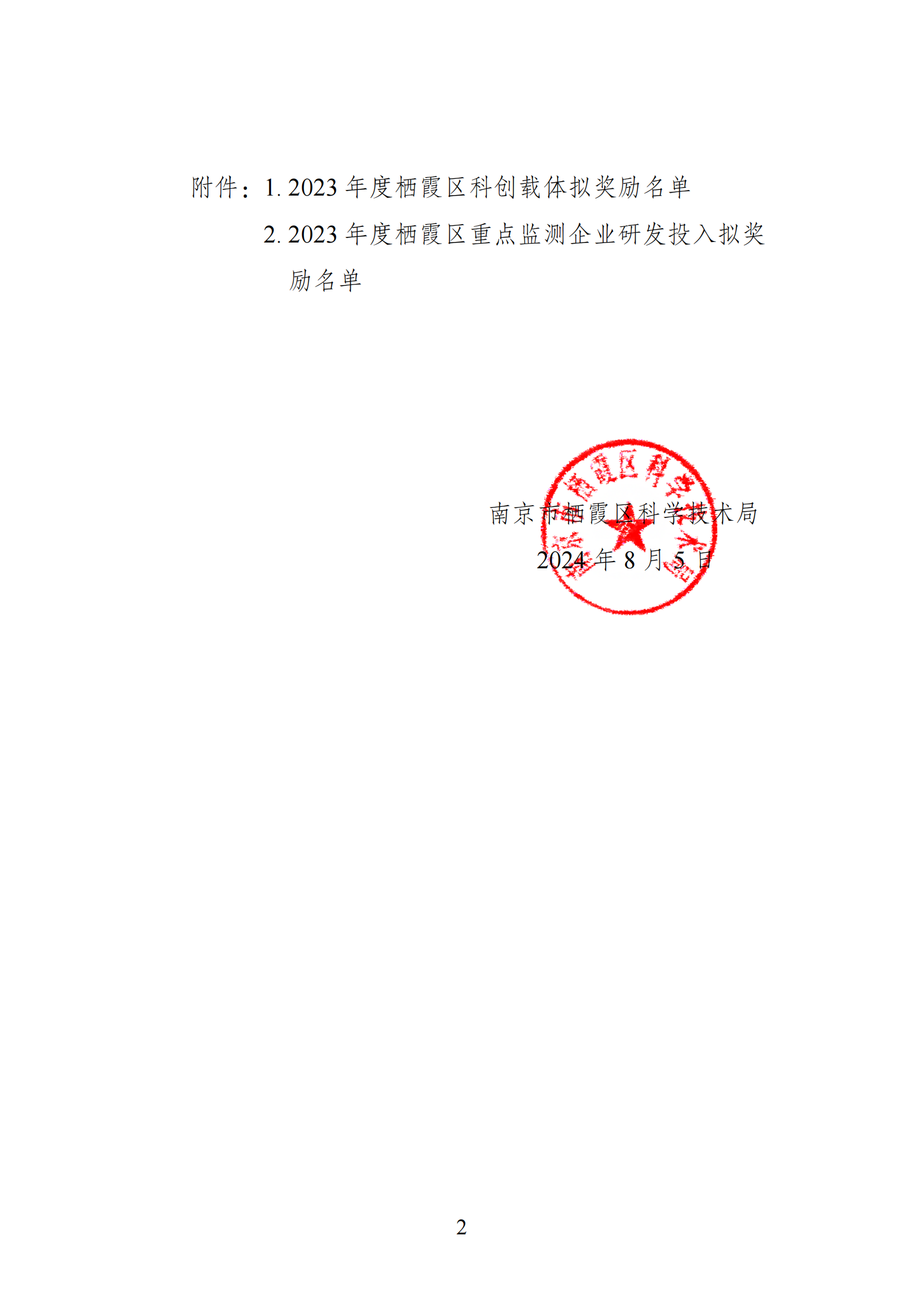 棲霞區2023年度科創載體、重點監測企業研發投入等政策擬獎勵企業名單公示
