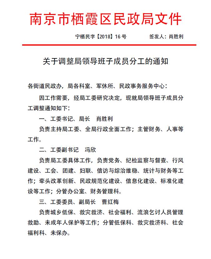 關(guān)于調(diào)整局領(lǐng)導班子成員分工的通知