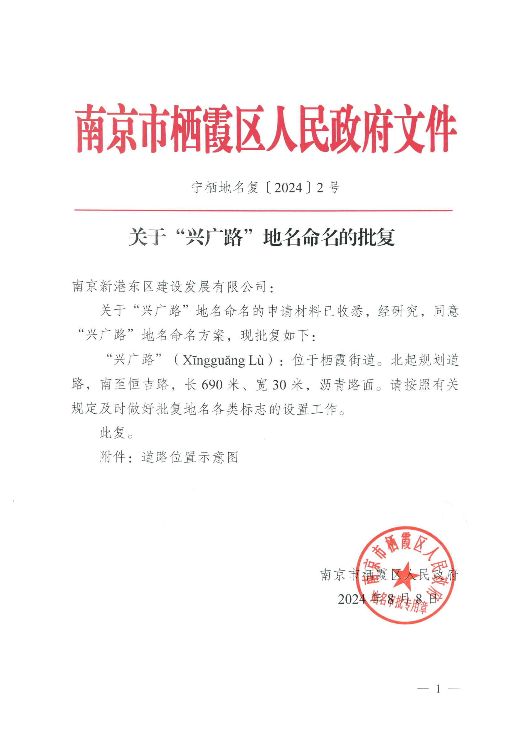 寧棲地名復〔2024〕2號—關于“興廣路”地名命名的批復