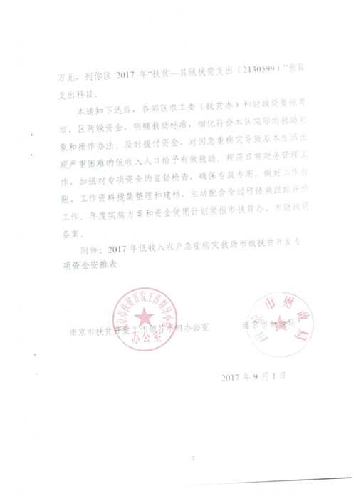 信息名稱:    關于下達2017年低收入農戶急重病災救助市級扶貧開發專項資金的通知