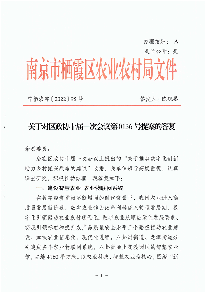 (寧棲農字〔2022〕95號)關于對區(qū)政協十屆一次會議第0136號提案的答復