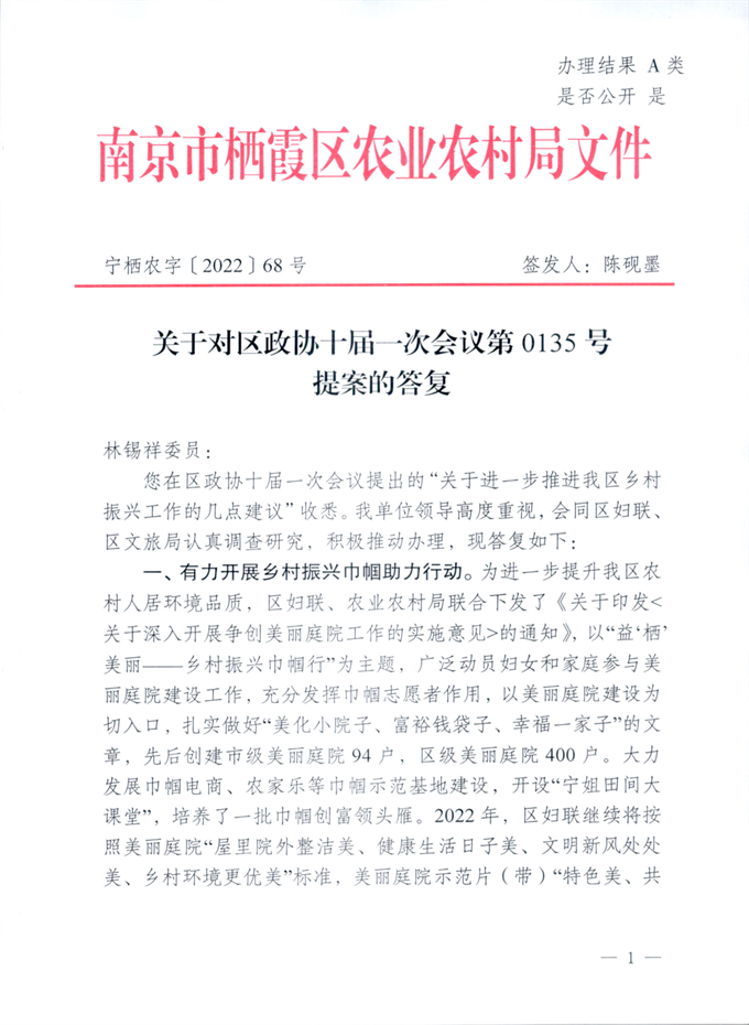 寧棲農字〔2022〕68號 關于對區政協十屆一次會議第0135號提案的答復0630(林錫祥)