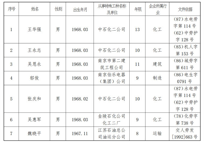 信息名稱:    南京市特殊工種提前退休人員情況公示