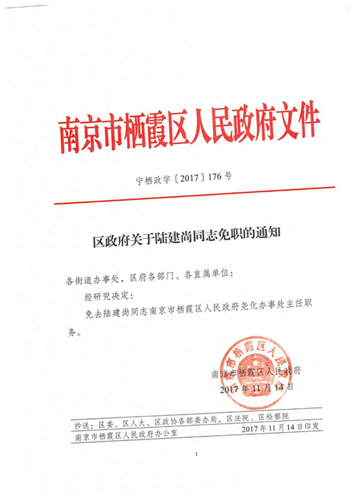 信息名稱:    區政府關于陸建尚同志免職的通知