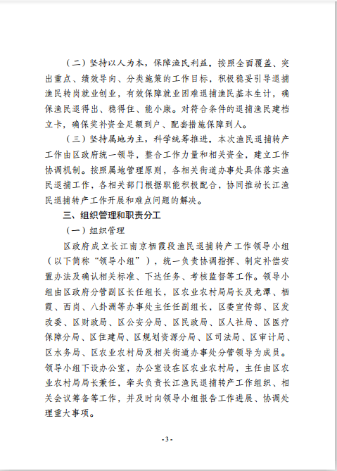 區(qū)政府辦公室關(guān)于印發(fā)長江南京棲霞段漁民退捕轉(zhuǎn)產(chǎn)工作方案的通知
