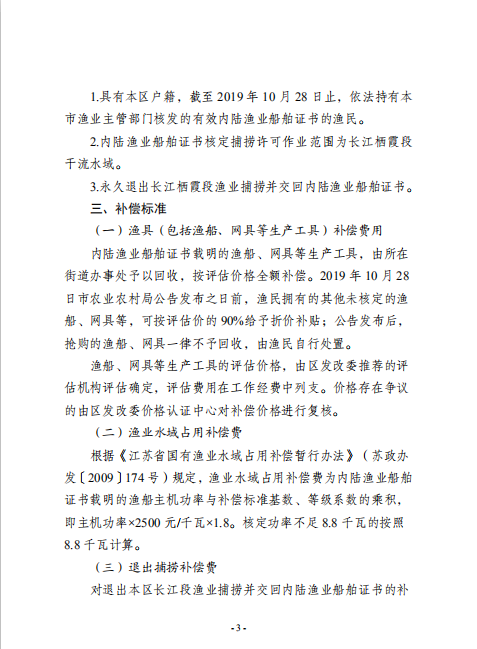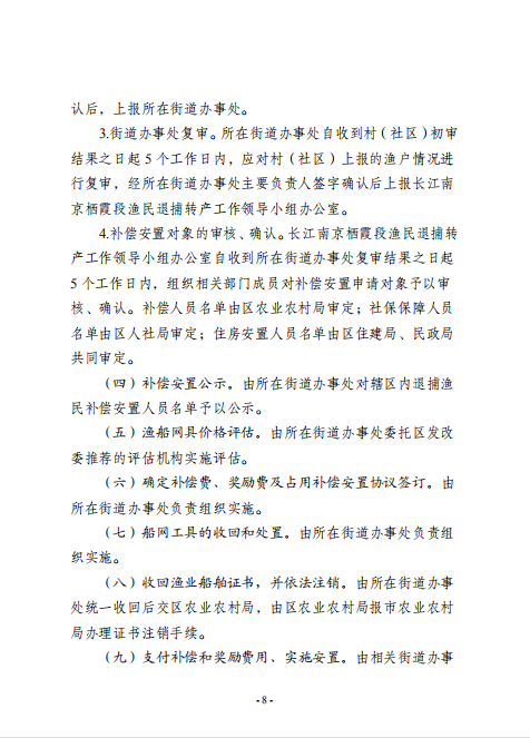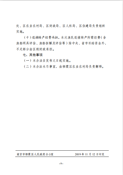 區政府辦公室關于印發長江南京棲霞段漁民退捕轉產補償安置方法的通知