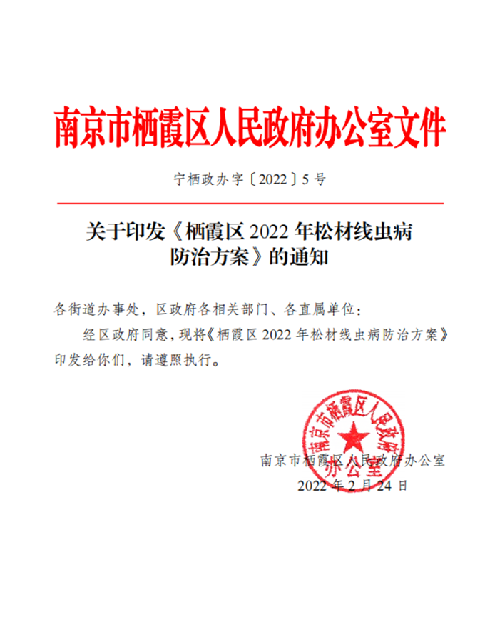 關于印發《棲霞區2022年松材線蟲病防治方案》的通知