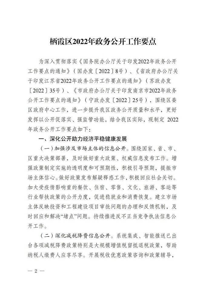 區(qū)政府辦公室關(guān)于印發(fā)棲霞區(qū)2022年政務(wù)公開(kāi)工作要點(diǎn)的通知