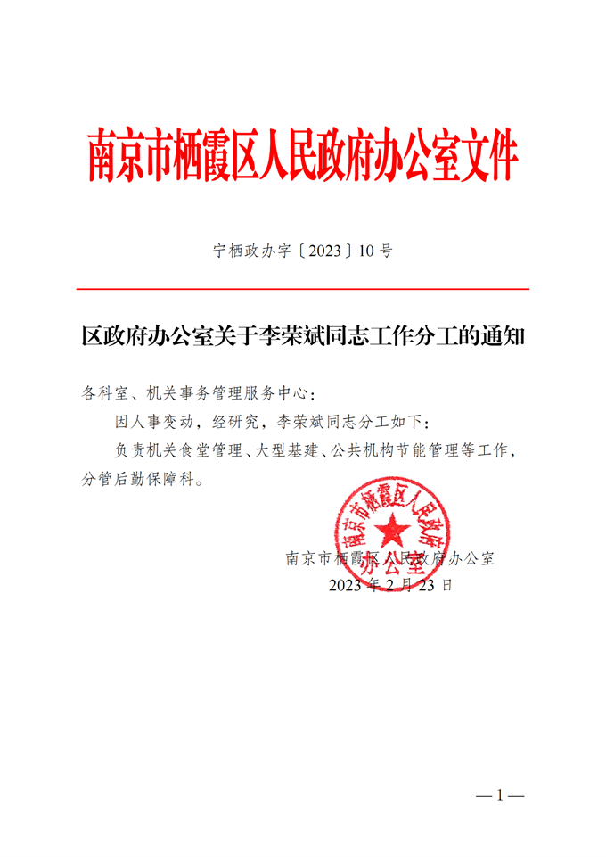 寧棲政辦字〔2023〕10號(hào) 區(qū)政府辦公室關(guān)于李榮斌同志工作分工的通知.pdf