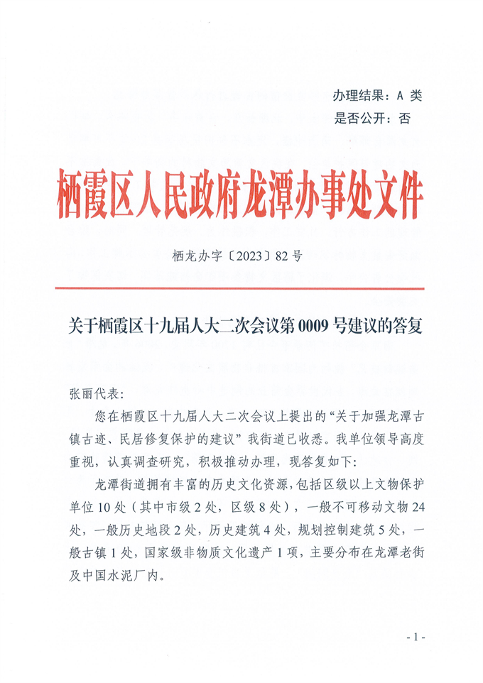 棲龍辦字[2023]82號關于棲霞區十九屆人大二次會議第0009號建議的答復