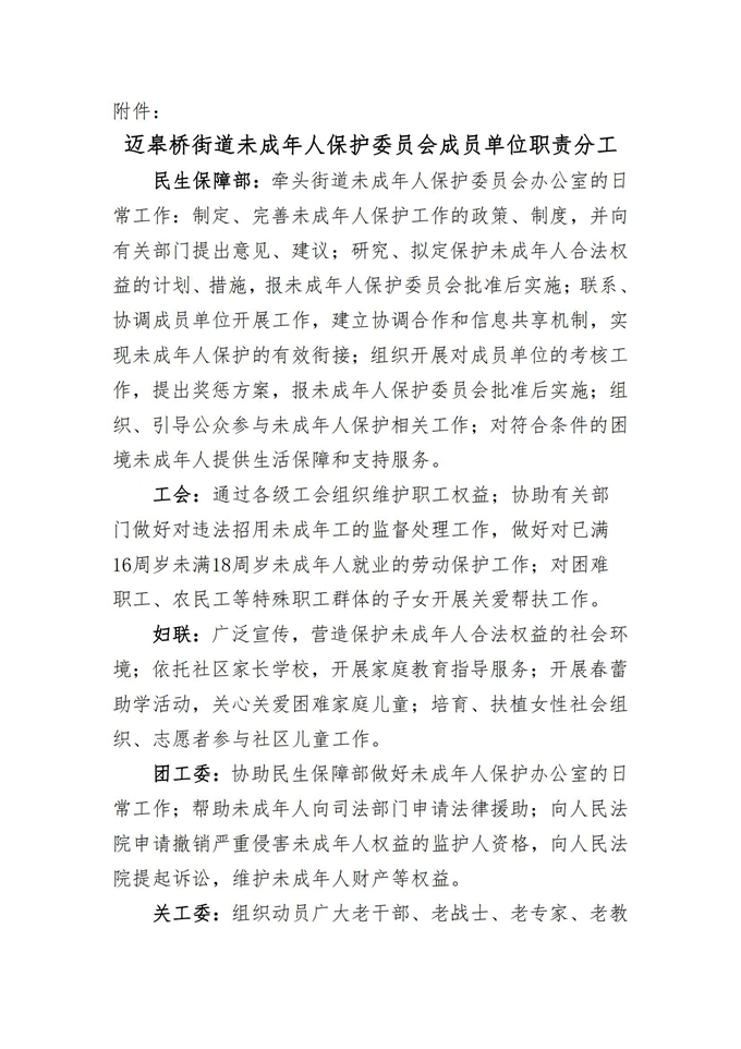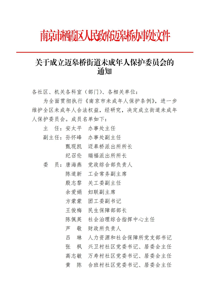關于成立邁皋橋街道未成年人保護委員會的通知
