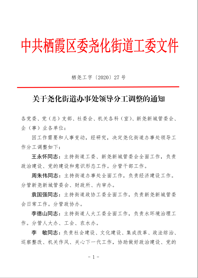 關(guān)于堯化街道辦事處領(lǐng)導(dǎo)分工調(diào)整的通知