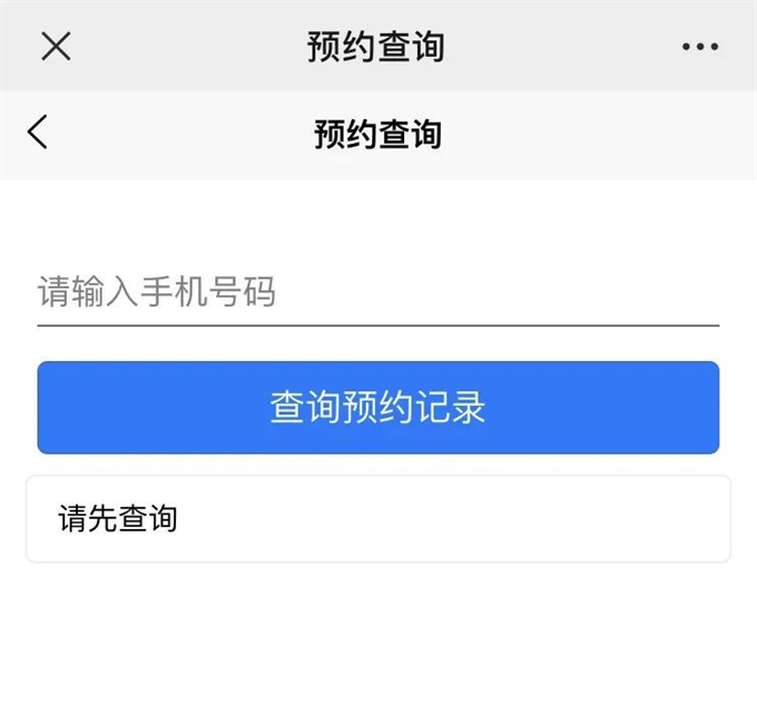 4)預約成功后自動跳轉,輸入手機號碼查看預約記錄。