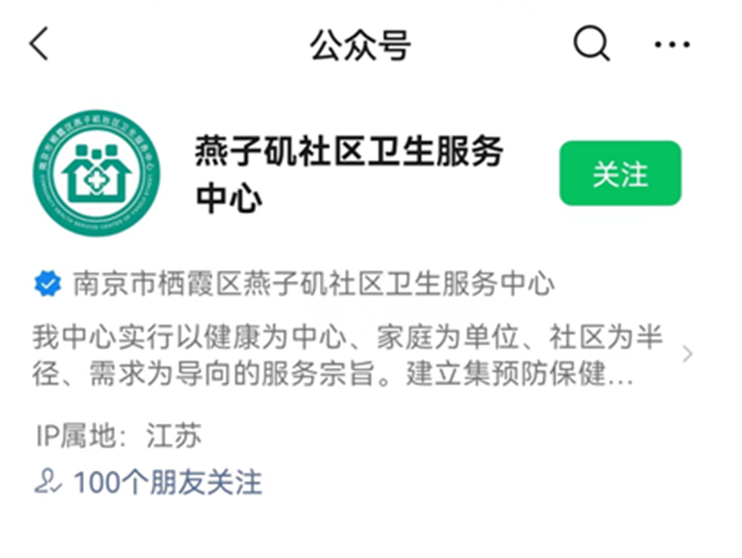 一、微信公眾號關注“燕子磯社區衛生服務中心”