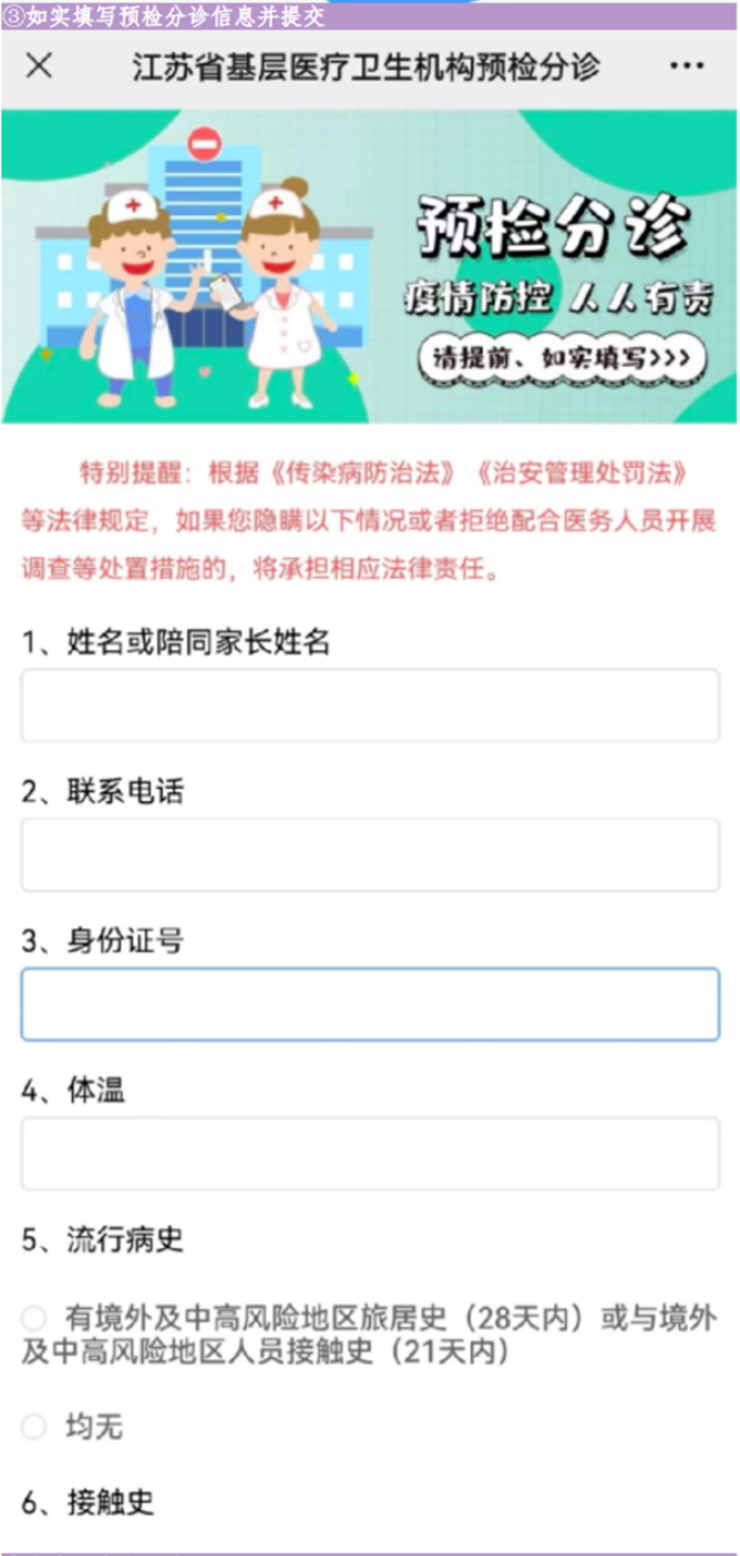 三、如實填寫預檢分診信息并提交