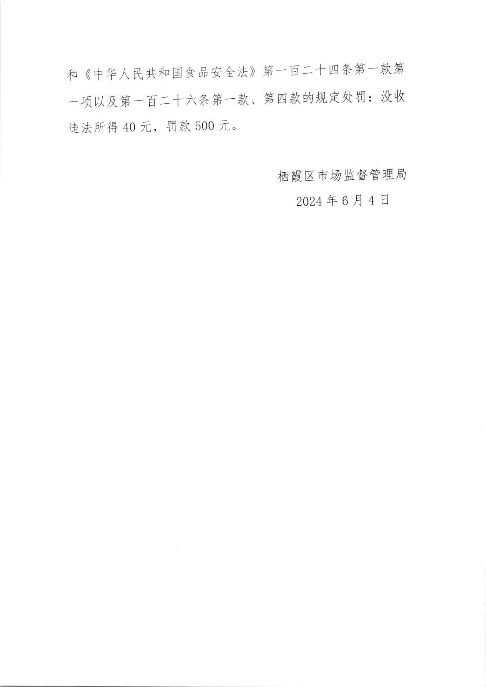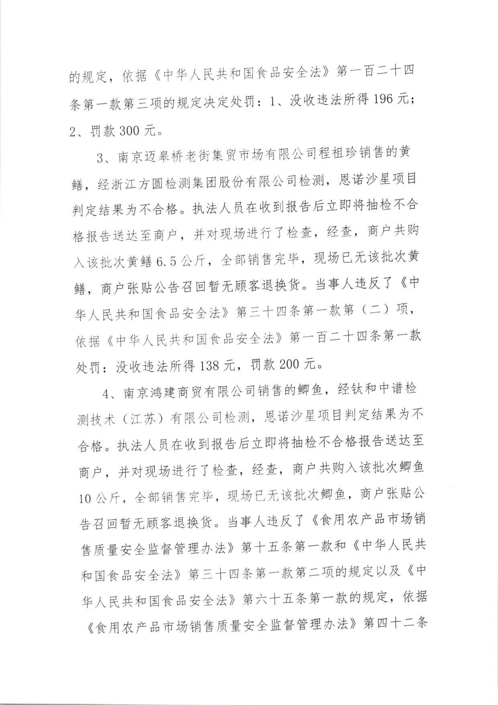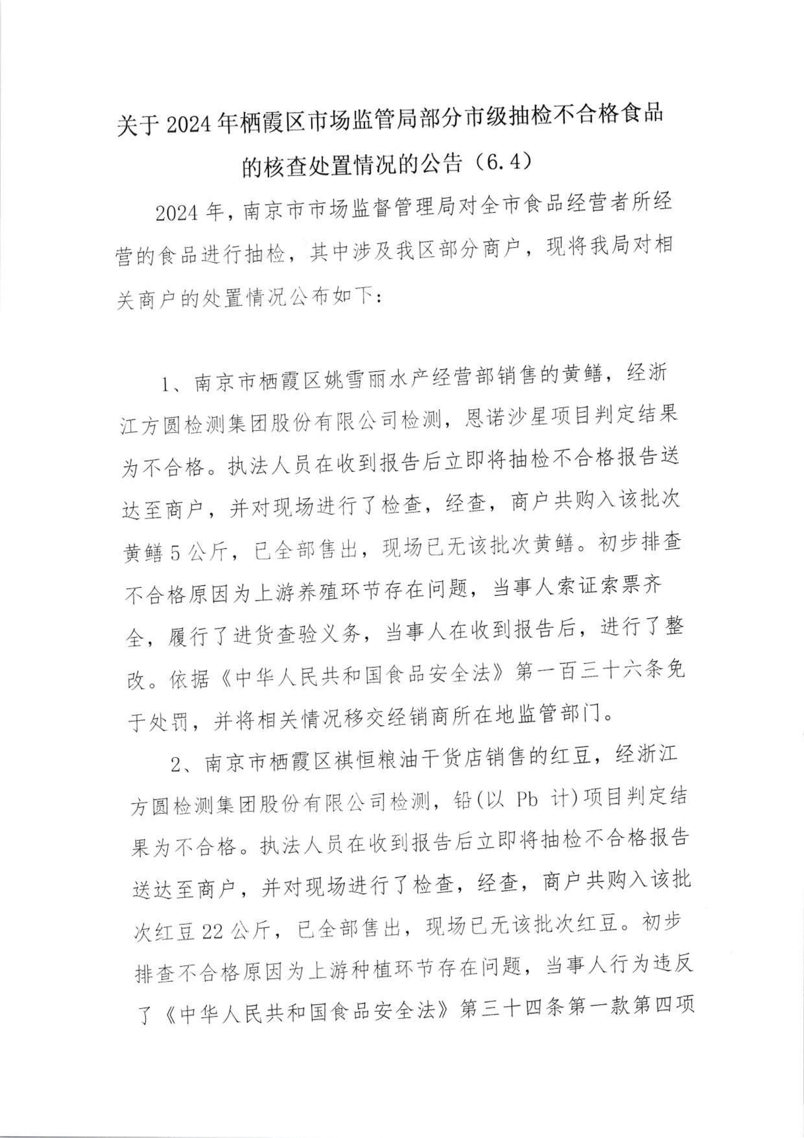 關于2024年棲霞區市場監管局部分市級抽檢不合格食品的核查處置情況的公告