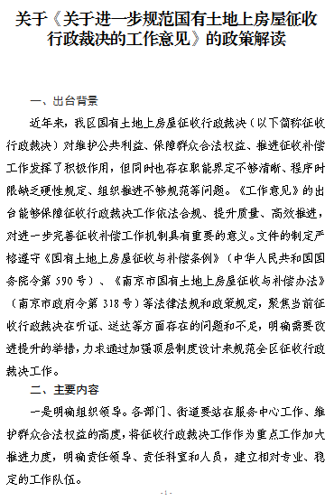 關于《關于進一步規范國有土地上房屋征收行政裁決的工作意見》的政策解讀